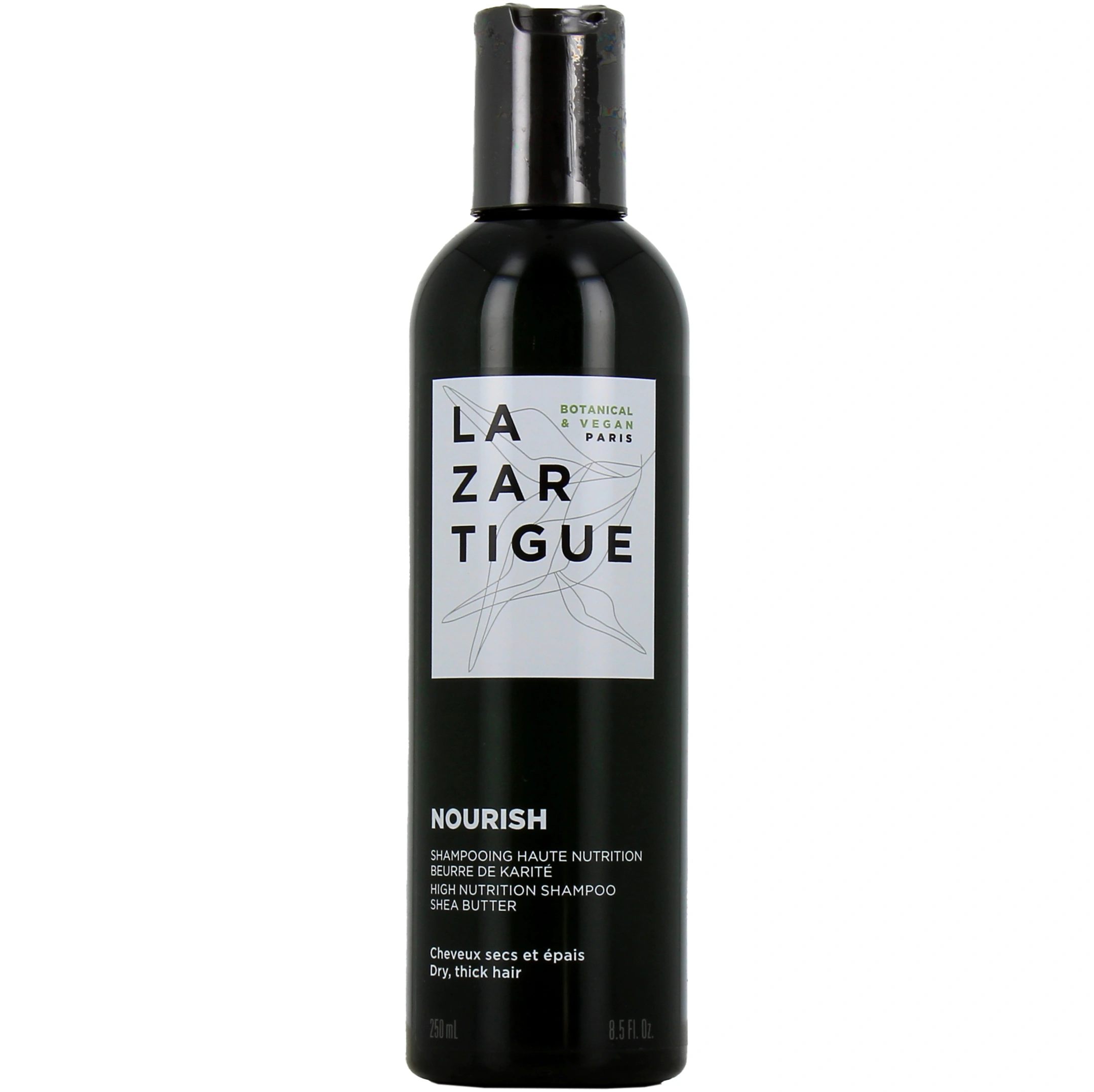 Présentation proposée par votre pharmacie en ligne pour le shampooing haute nutrition Lazartigue Nourish : flacon de 250 ml.