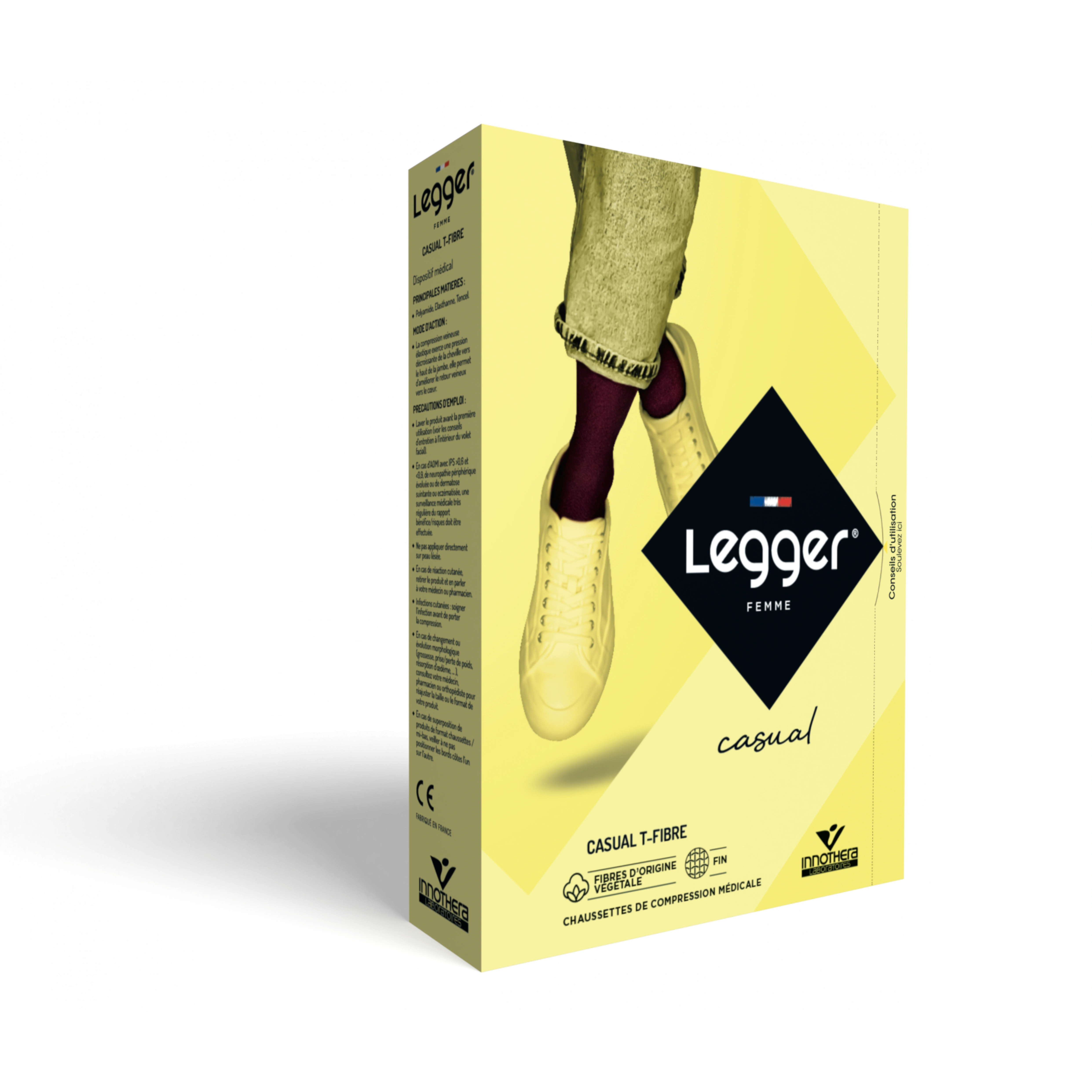 Vous pourrez sélectionner vos chaussettes de contention pour femme Legger Casual T-Fibre de classe 2 parmi les présentations suivantes chez Pharmacie des Drakkars : Tailles 1 à 5, Hauteur Normal ou Long, et coloris Noir, Beige ou Bordeaux.