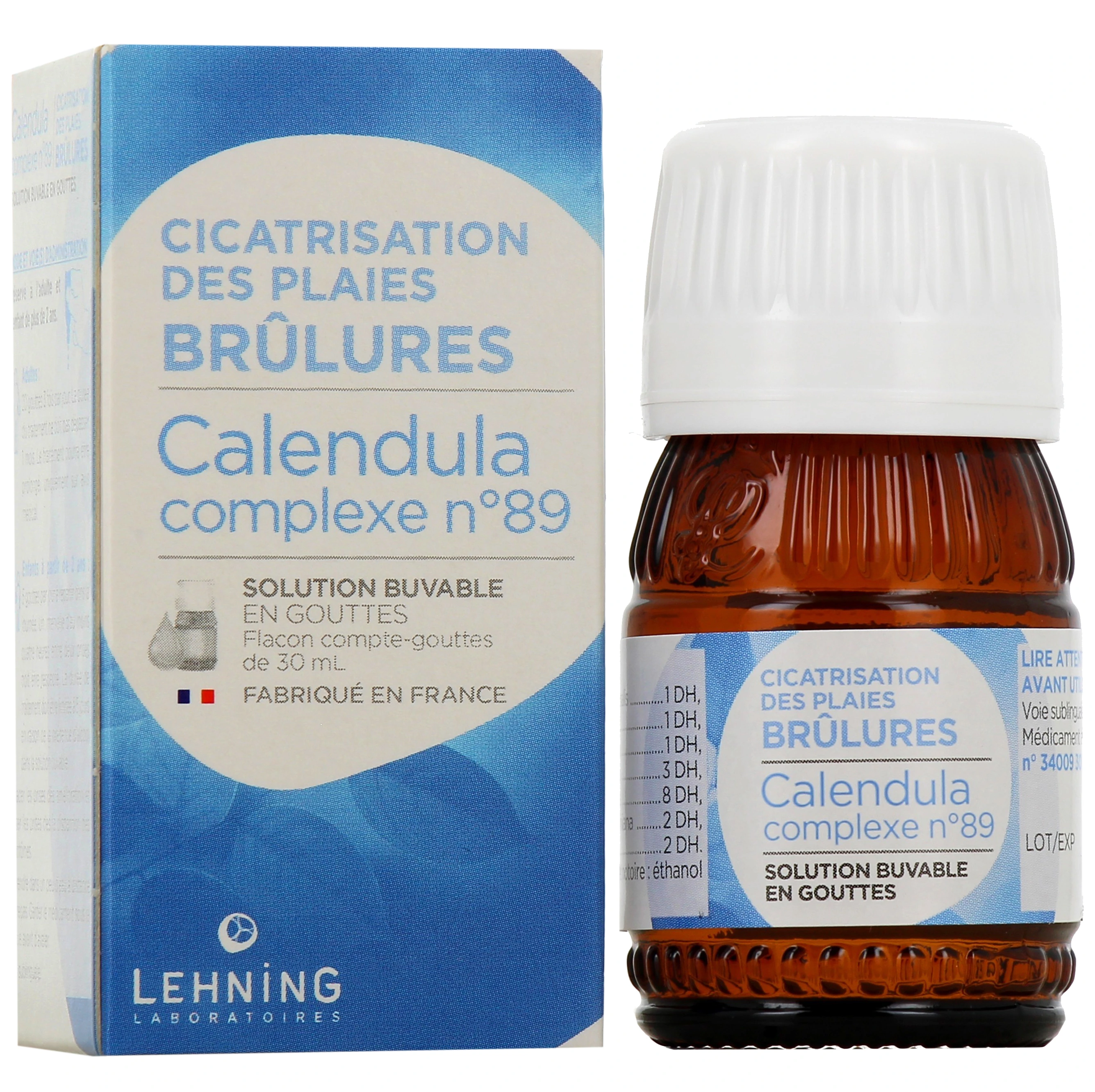 Lehning Calendula Complexe n°89 en solution buvable 30 ml est un médicament homéopathique traditionnellement utilisé dans le traitement des brûlures superficielles et peu étendues.