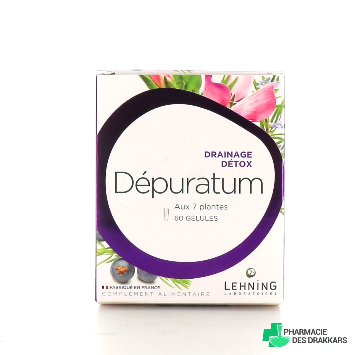 Depuratum Drainage Détox est un complément alimentaire des laboratoires Lehning à base de plantes, qui contribue à drainer et détoxifier l'organisme.