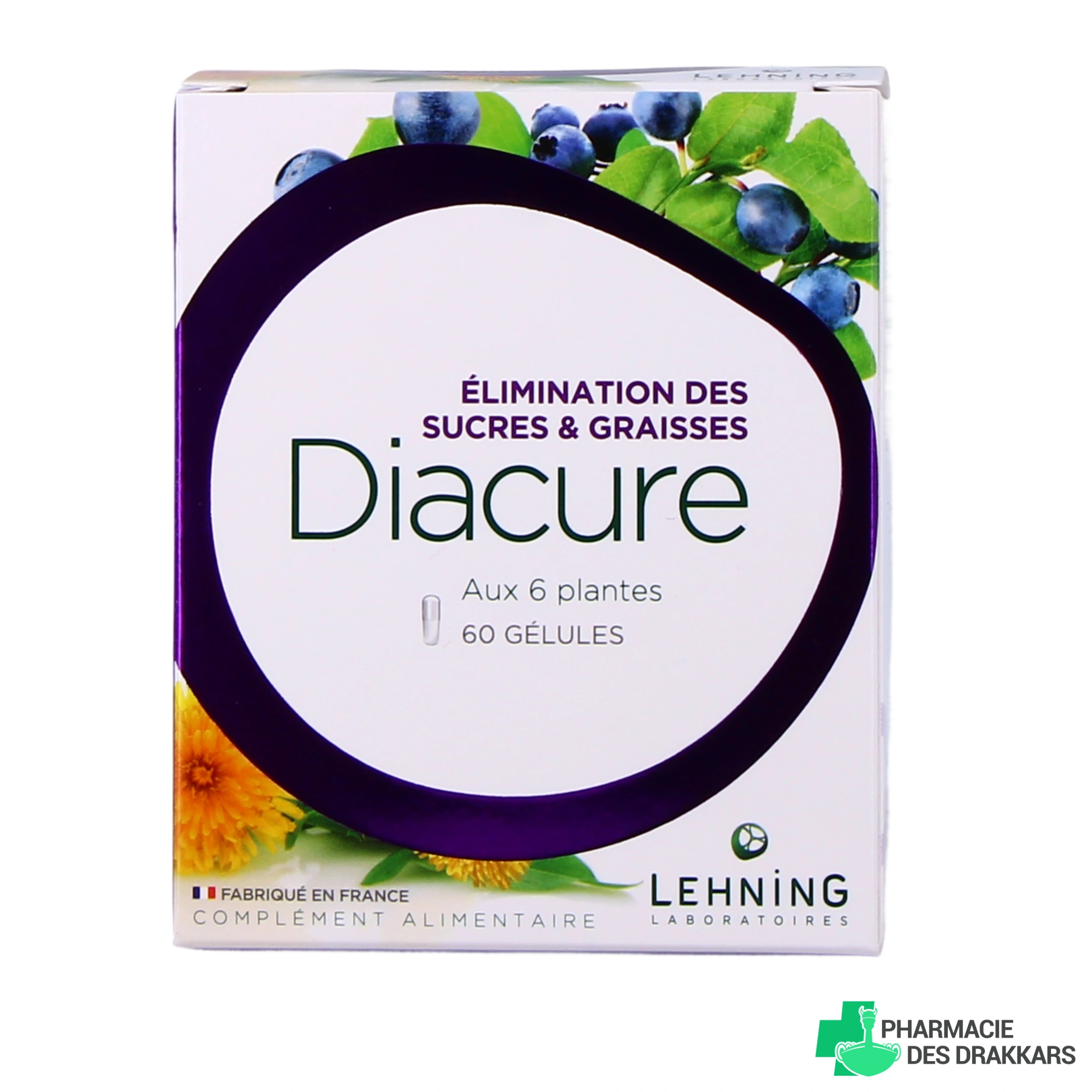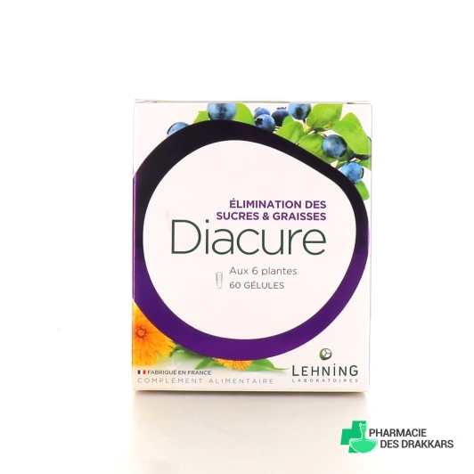 Diacure est un complément alimentaire des Laboratoires Lehning. Il est exclusivement formulé avec des ingrédients d'origine naturelle et est indiqué pour l'élimination des sucres et graisses.