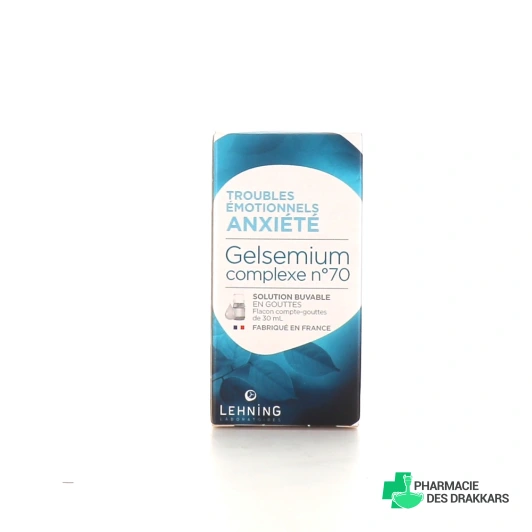 Lehning Gelsemium Complexe n°70 est un médicament homéopathique délivré sans ordonnance qui est traditionnellement utilisé dans les manifestations fonctionnelles des troubles émotionnels et de l'anxiété légère, tels que le trac, le stress ou les phobies mineures.
