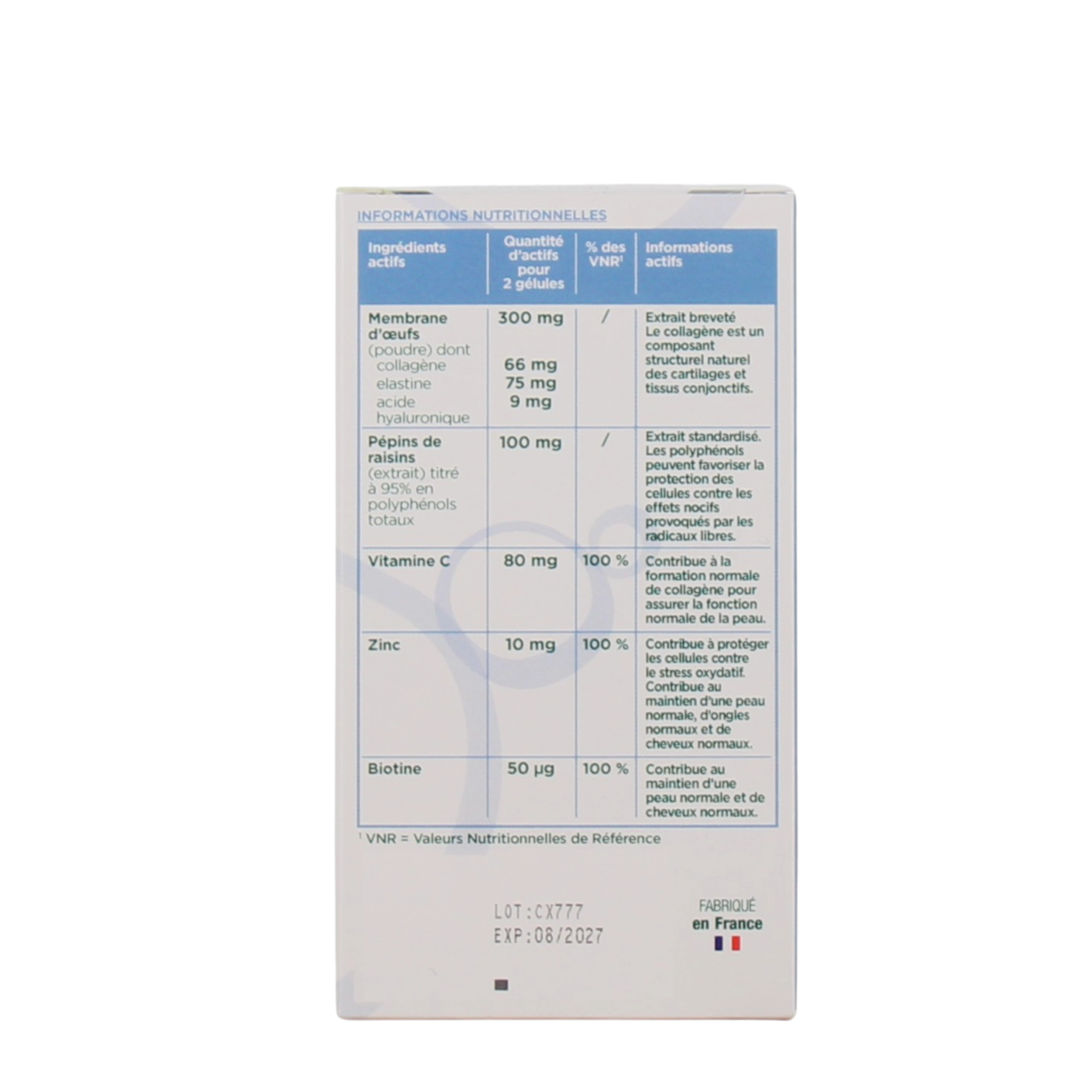Le complément alimentaire Rexoflex Beauté garantit une assimilation optimale par l'organisme. De plus, sa coquille d'œuf est issue d'un sourcing durable et écoresponsable puisqu'elle provient de l'upcycling de co-produits de l'industrie agro-alimentaire.