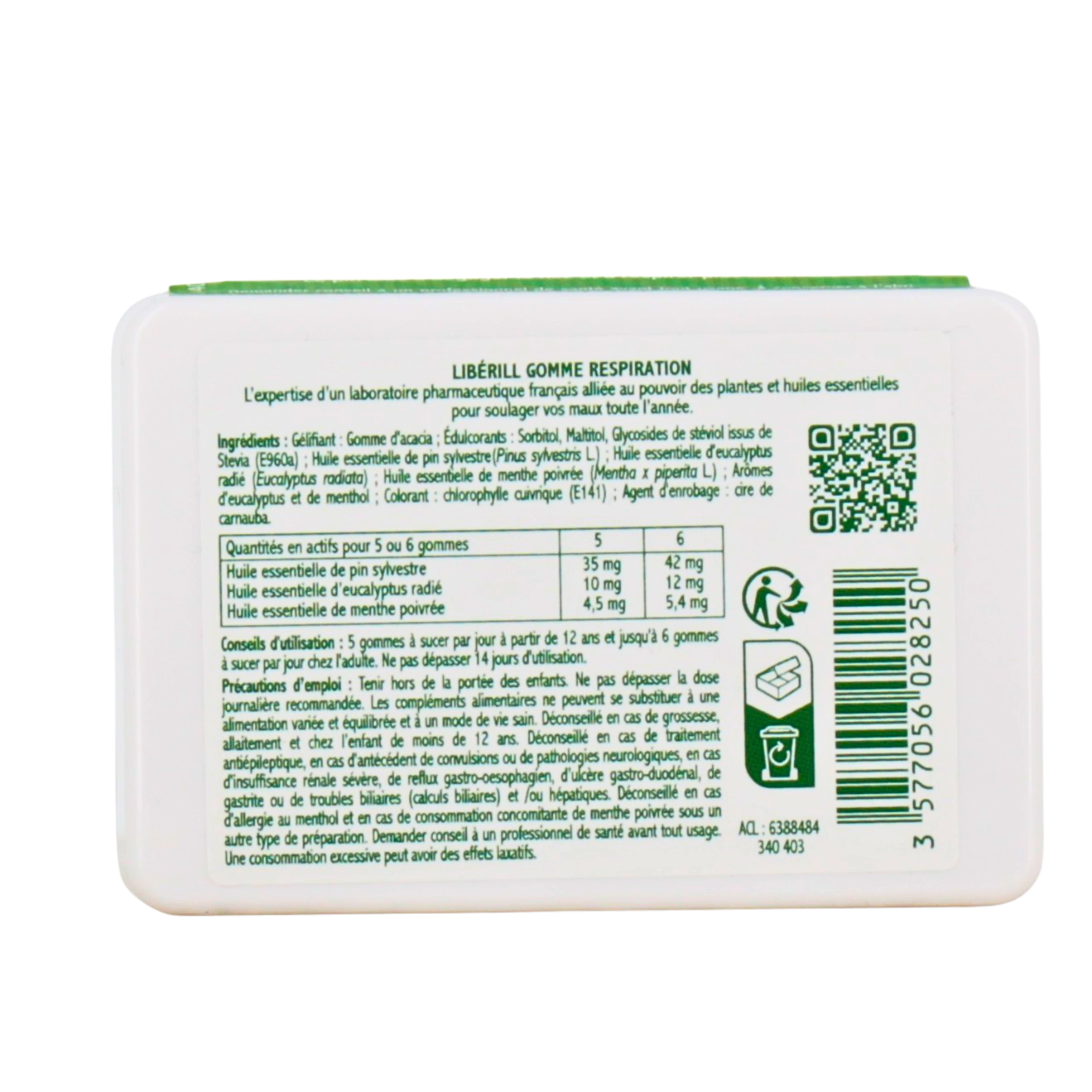 Les gommes Libérill Respiration sont des compléments alimentaires formulés pour aider à dégager les voies respiratoires et faciliter la respiration en cas d'encombrement.