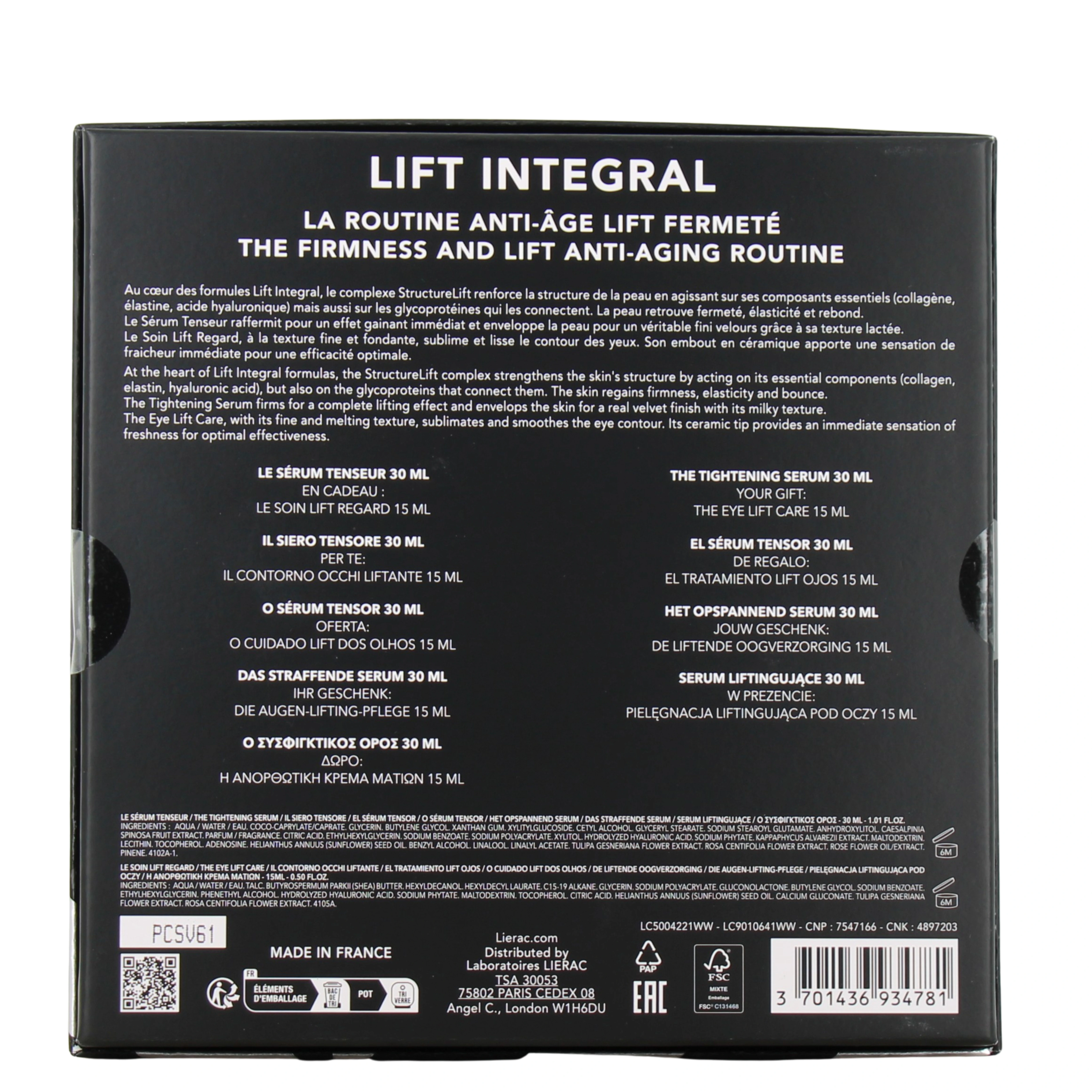 Le coffret Lift Integral Lierac se décline en deux versions : le sérum tenseur ou la crème raffermissante accompagné du soin lift regard de la gamme.