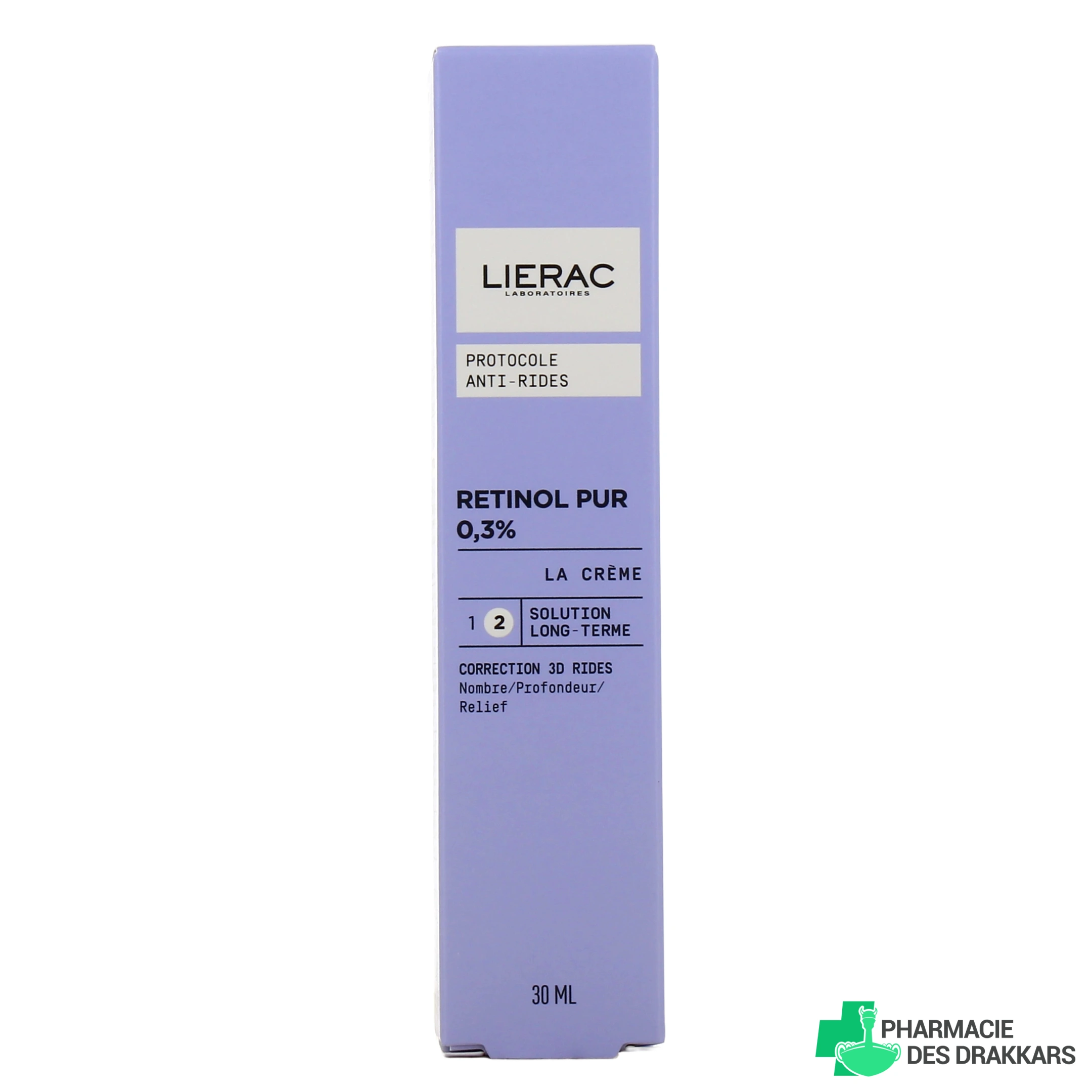 Vous pourrez retrouver la Crème Protocole Anti-Rides au rétinol pur de Lierac dans les conditionnements suivants chez Pharmacie des Drakkars : tube de 30 ml.