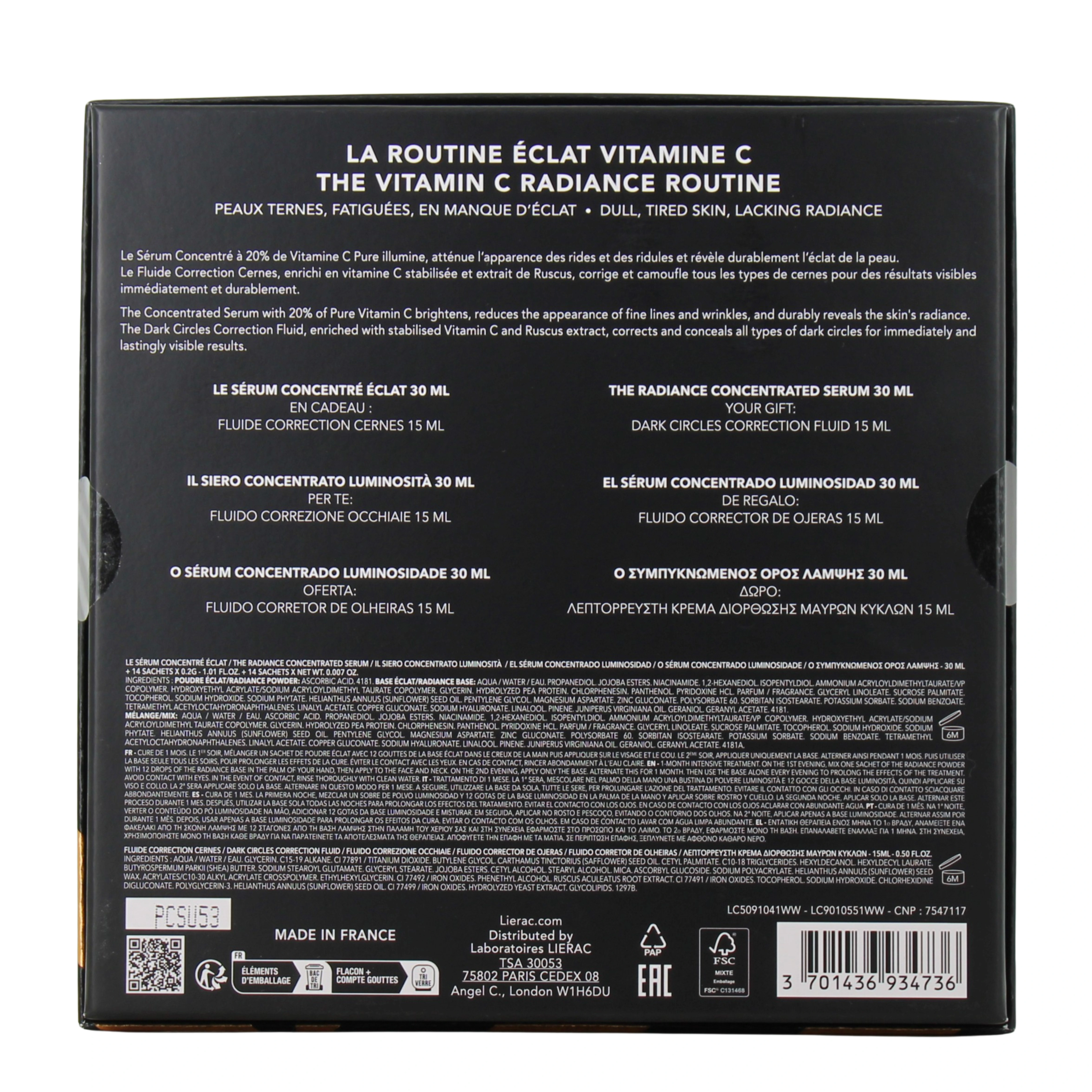 Le principe des Protocoles Lierac est de proposer à chaque problème de peau un duo de soins ciblés : une solution immédiate et une solution long terme. Le sérum concentré du Protocole Éclat est la solution long terme de ce protocole.