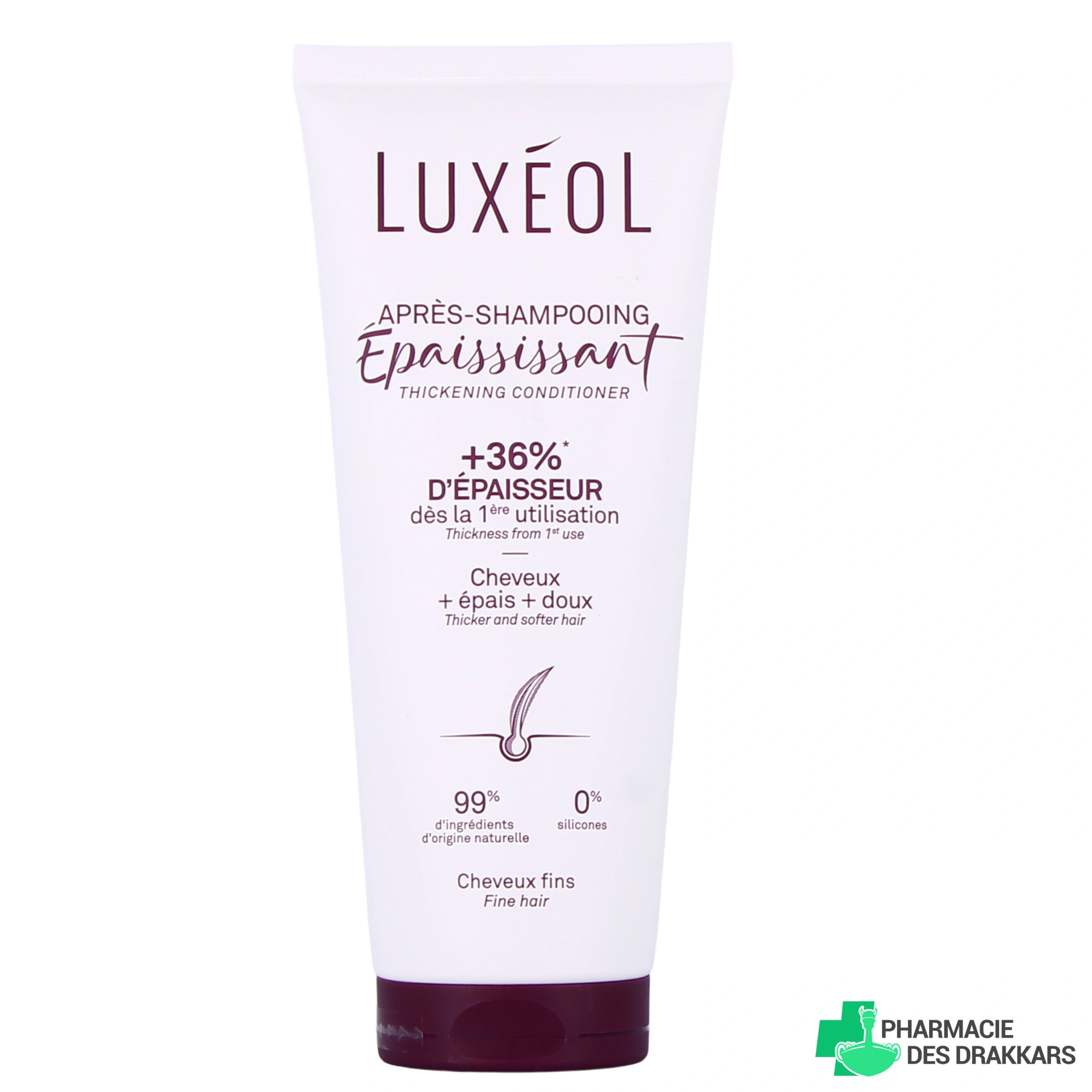 Conditionnement disponible sur notre pharmacie en ligne pour l'après-shampooing épaississant Luxéol : tube de 200 ml.
