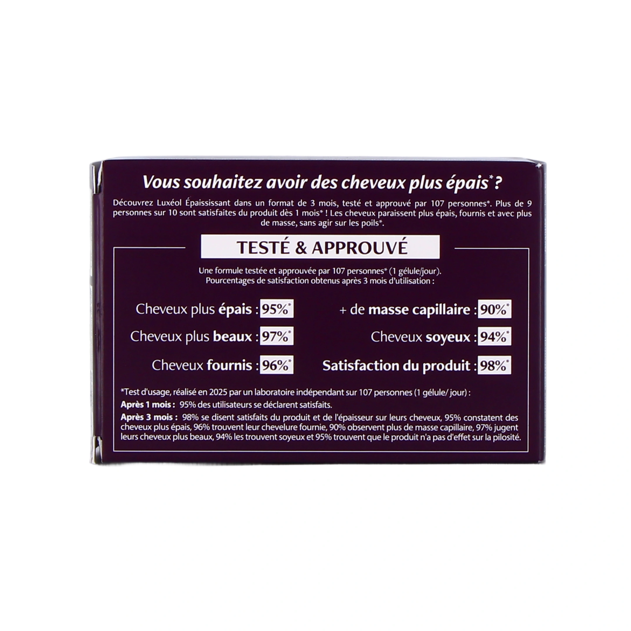 Luxéol a conçu ce complément alimentaire épaississant pour des cheveux plus épais, plus de masse capillaire et une chevelure plus fournie et plus belle sans aucun effet sur la pilosité.