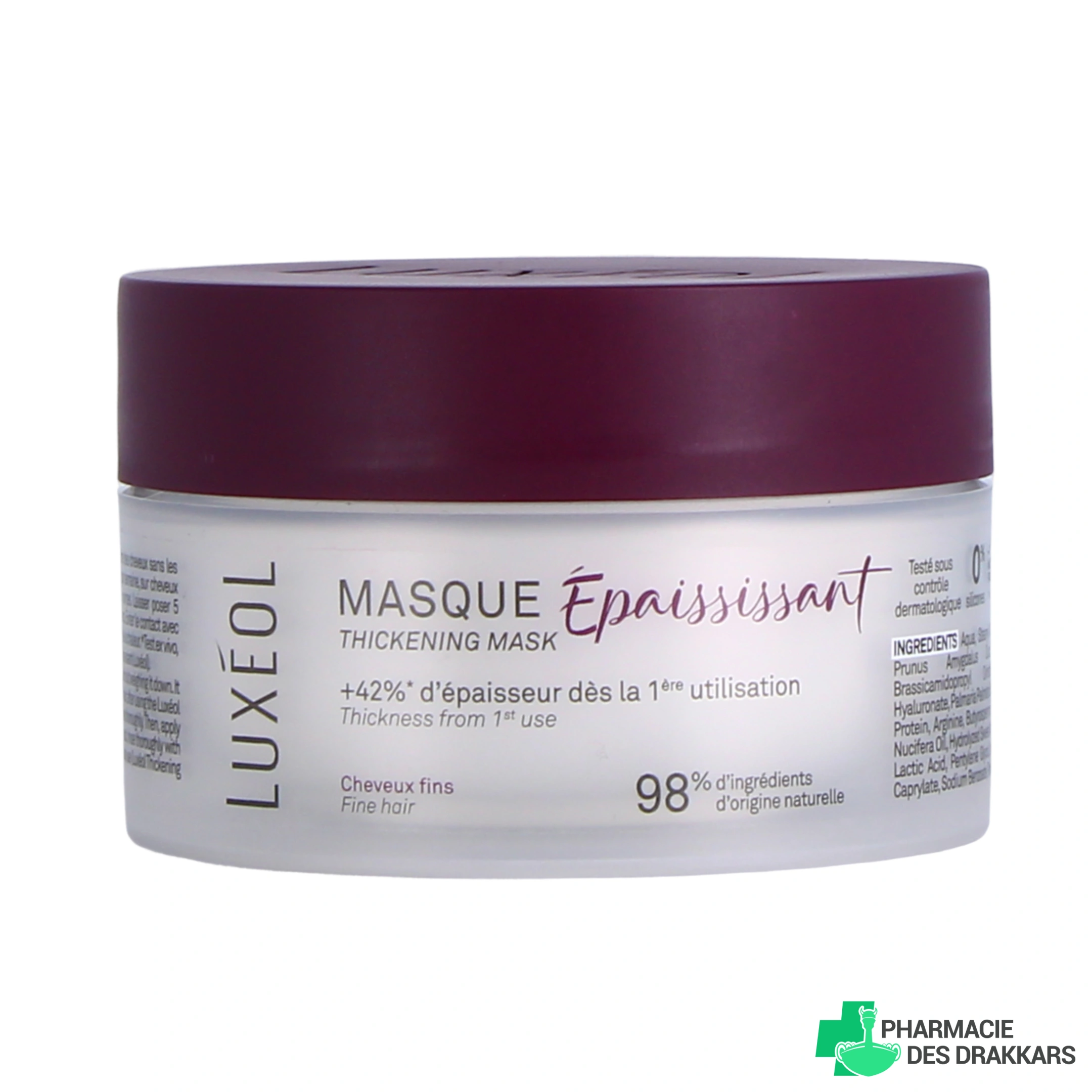 Conditionnement proposé sur notre pharmacie en ligne pour le masque épaississant Luxéol : pot de 200 ml.