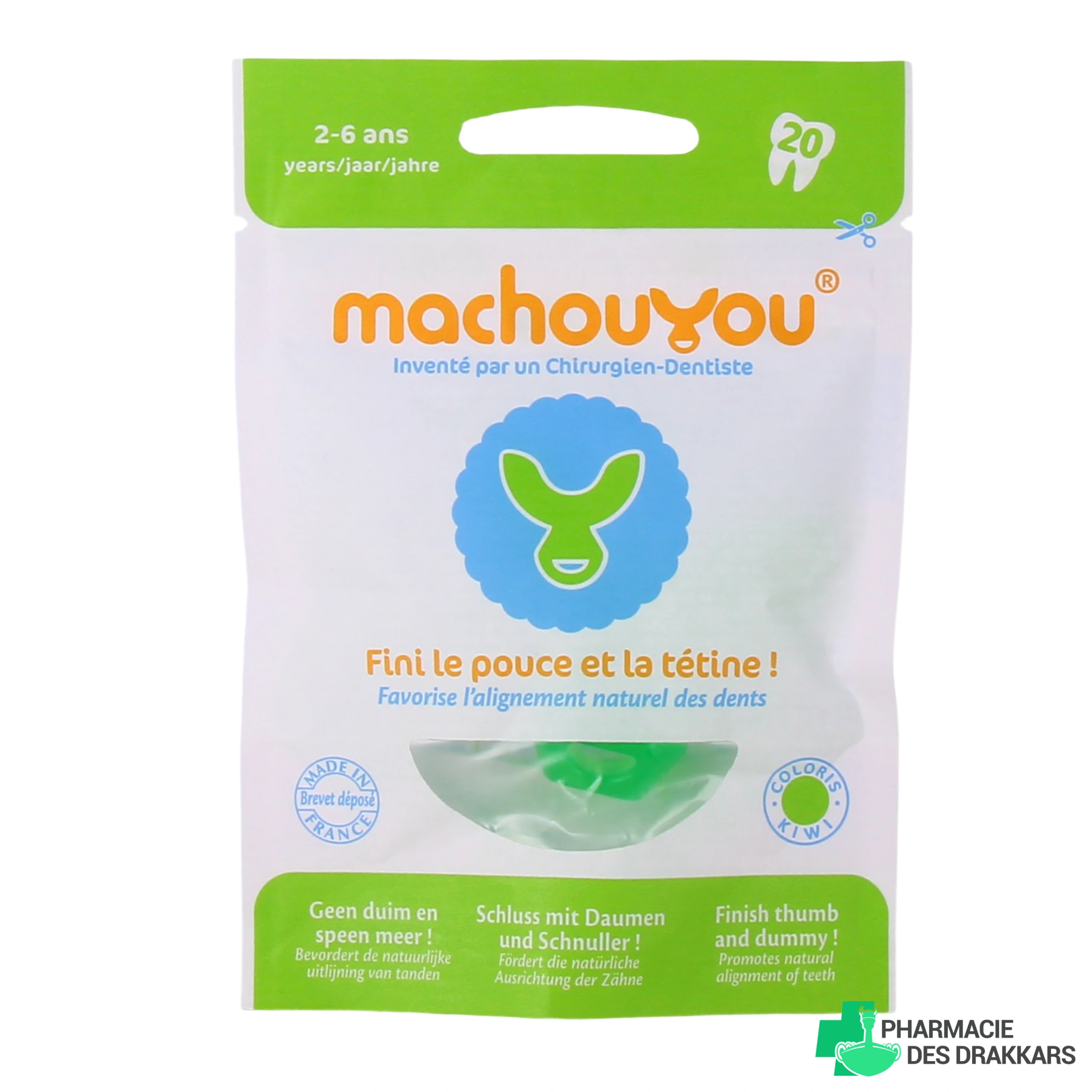 Machouyou est un dispositif de prévention orthodontique pour les enfants à partir de 2 ans. Il aide au sevrage de la tétine et du pouce, tout en favorisant l'alignement dentaire. Il est proposé en deux coloris distincts sur le site de la Pharmacie des Drakkars.