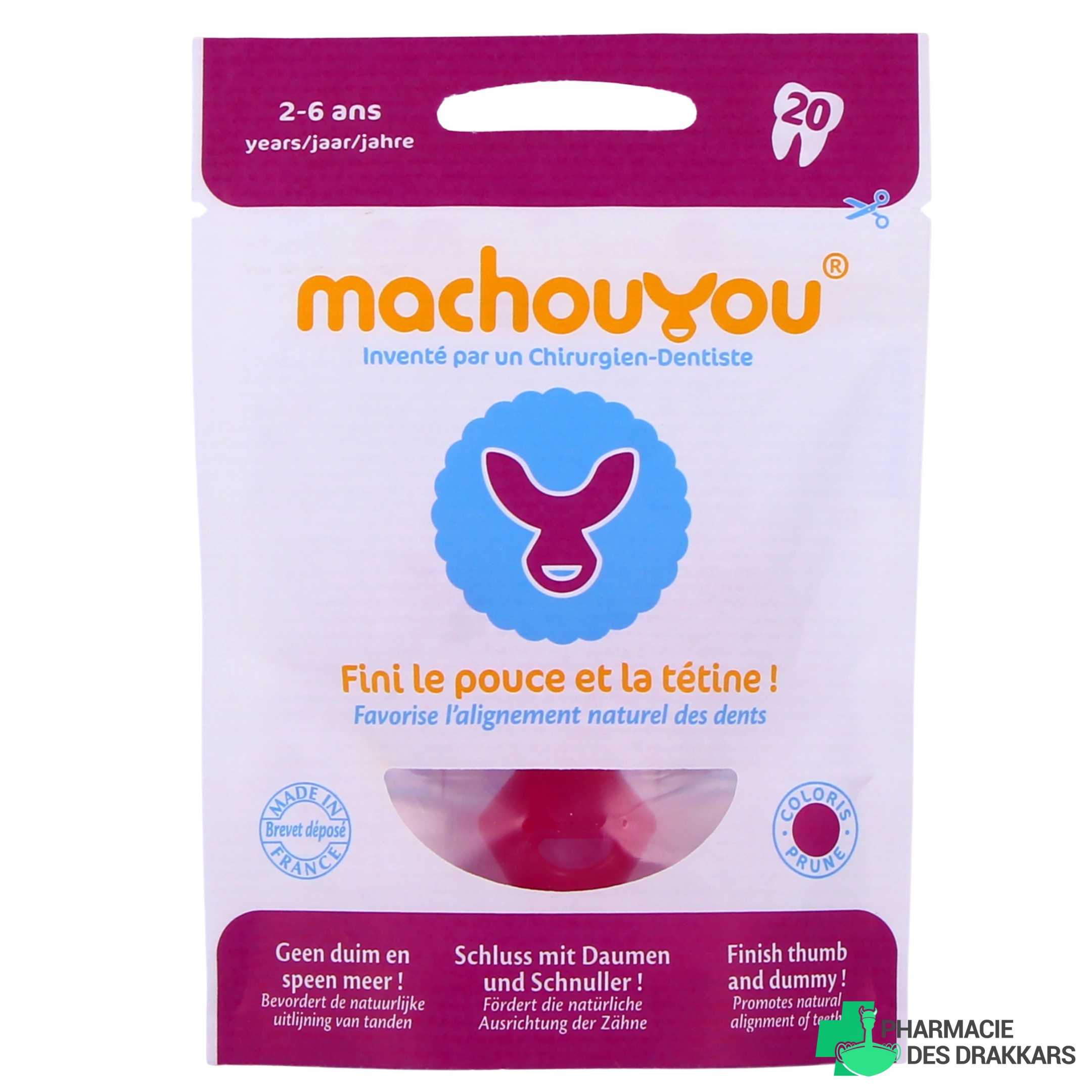 Machouyou est un dispositif de prévention orthodontique pour les enfants à partir de 2 ans. Il aide au sevrage de la tétine et du pouce, tout en favorisant l'alignement dentaire. Il est proposé en deux coloris distincts sur le site de la Pharmacie des Drakkars.