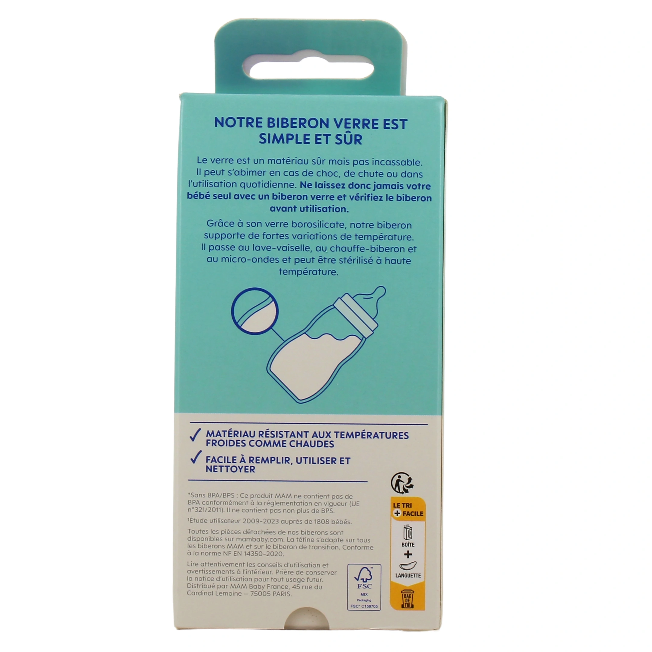 Propriétés du biberon en verre 1er âge MAM