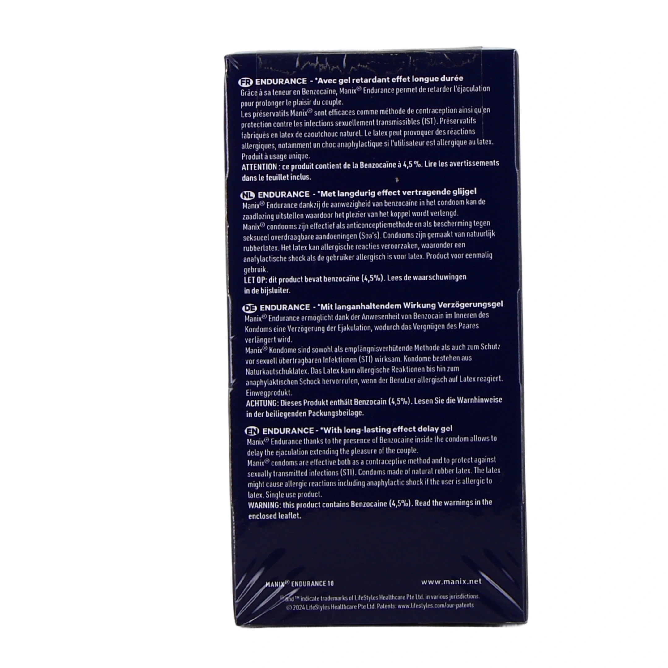 Pour toutes celles et ceux qui souhaitent savourer chaque instant sans précipitation, la gamme de préservatifs Manix Endurance est une solution idéale pour prolonger la complicité et le plaisir en couple. Ce préservatif innovant a été spécifiquement conçu pour aider à retarder l'éjaculation, en vous permettant de mieux contrôler votre excitation et ainsi améliorer la durée de vos rapports sexuels. Chacun de ces préservatifs a été testé électroniquement à 100 %, et affiche les normes les plus exigeantes pour votre sérénité.