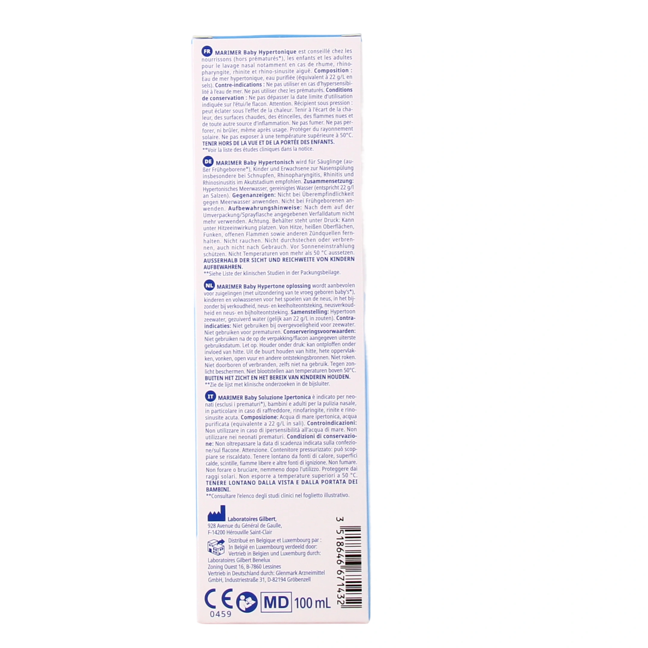 Vous pourrez retrouver le spray Marimer Baby Rhume Rhinopharyngite des laboratoires Gilbert dans les présentations suivantes chez Pharmacie des Drakkars : flacon spray de 100 ml avec embout sécurité bébé.