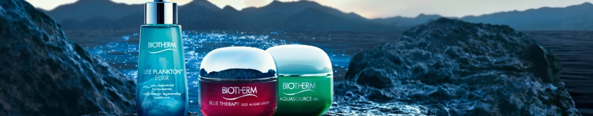 Biotherm propose une gamme complète de produits de soin inspirés des biotechnologies bleues, pour les femmes et les hommes qui cherchent à préserver leur peau des dommages quotidiens.