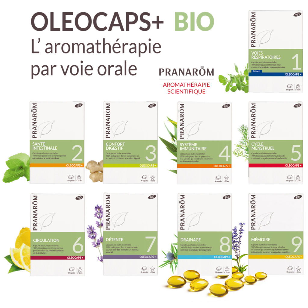 Oléocaps est une des gammes les plus récentes du Laboratoire Pranarom, spécialiste incontesté de l'aromathérapie scientifique. Elle a été créée dans l'optique de faciliter l'utilisation des huiles essentielles par le grand public, en conditionnant ces dernières dans de petites capsules dans lesquelles elles sont savamment dosées pour répondre au mieux à la problématique posée, tout en évitant toute forme de toxicité.