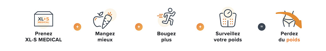 Une perte de poids efficace et durable ne peut en effet être obtenue qu'à la condition d'associer les produits XL-S Medical à une alimentation saine, à une activité physique régulière et à une surveillance accrue de l'évolution du poids.