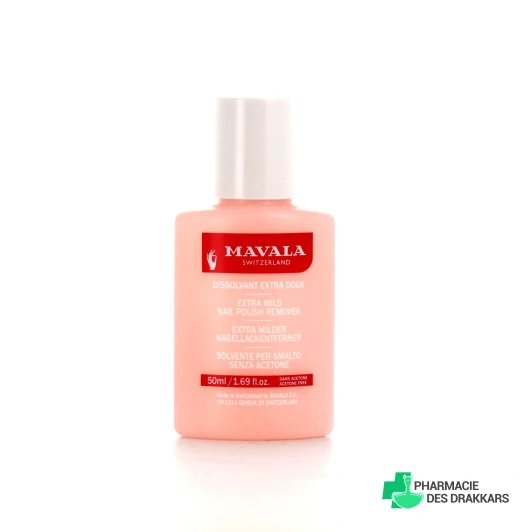 Vos ongles sont fragiles et vous êtes à la recherche d'un dissolvant qui ne sera pas source d'agression pour vos ongles et vos cuticules ? La Pharmacie des Drakkars vous propose donc le dissolvant extra-doux sans acétone Mavala. Il retire rapidement le vernis à ongle sans les abîmer et en respectant leur fragilité. Il peut être appliqué sur tous les types d'ongles même les plus délicats. Une fois le vernis à ongles retiré, vous pouvez renouveler votre manucure pour des mains soignées et sublimées.