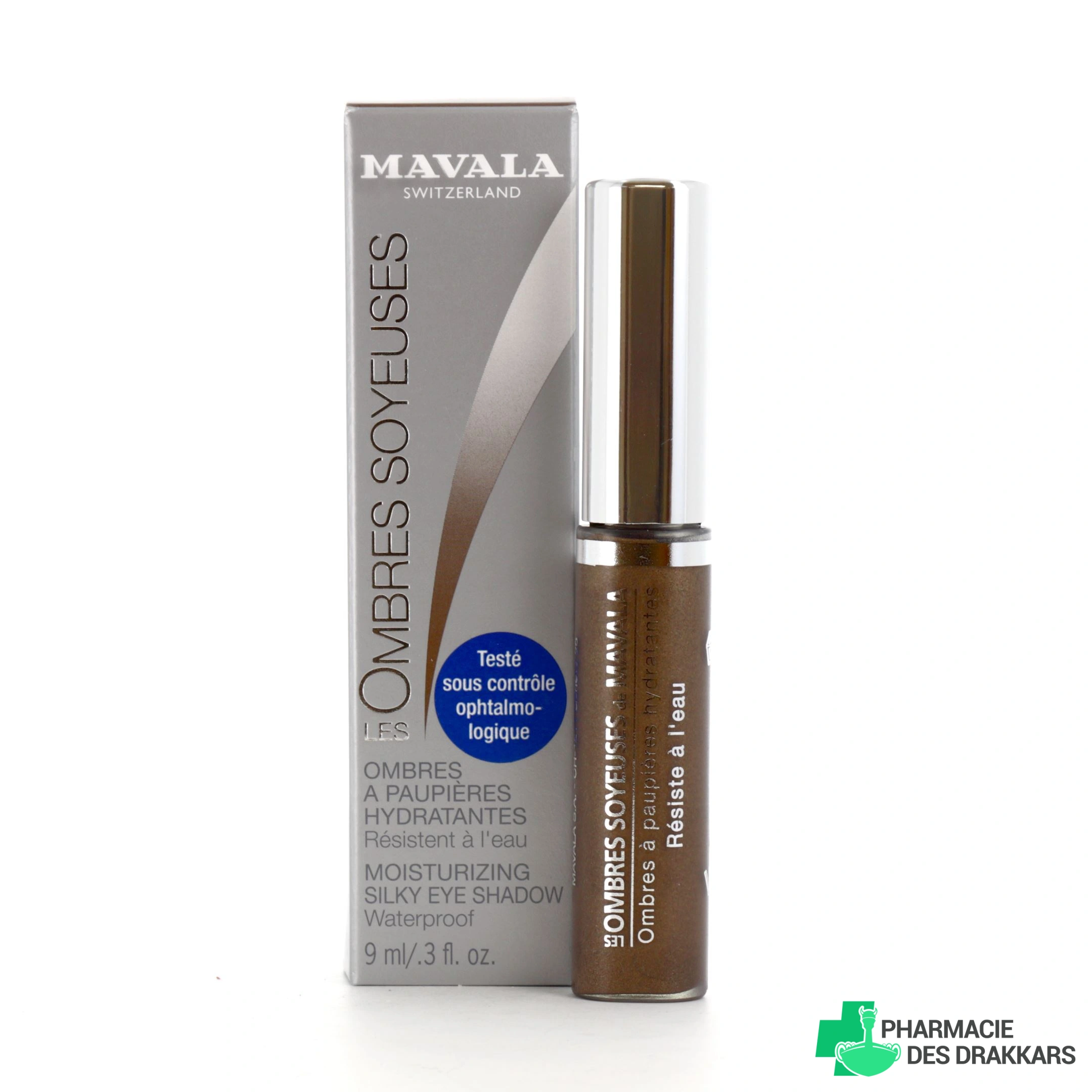 Conditionnement proposé par la Pharmacie des Drakkars pour Les Ombres Soyeuses Paupières Mavala : 1 tube avec applicateur sous étui.