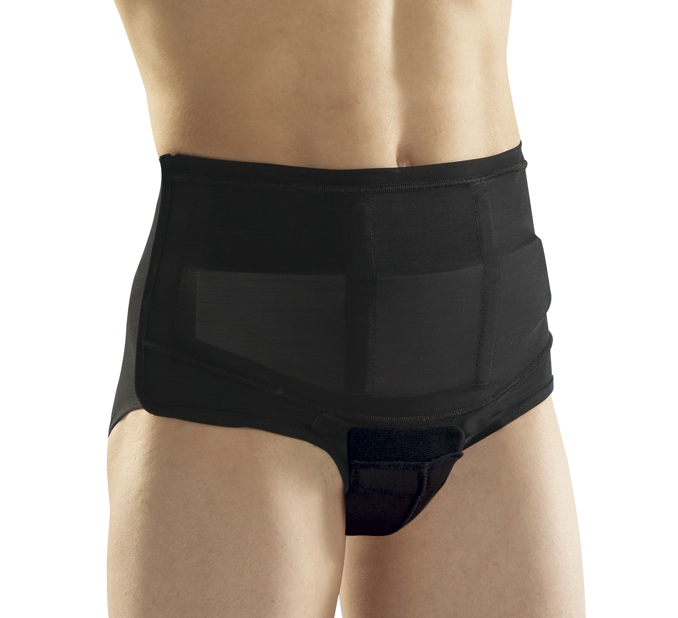 Grâce à la patte d'entrejambes, la tension s'exerce horizontalement et verticalement. Les larges velcro latéraux assurent un maintien contrôlé et donnent à cet appareil les qualités d'une ceinture standard adaptable à toutes les morphologies, tout en permettant le jeu musculaire. Une mousse, logée dans la partie antérieure de la ceinture, peut être déplacée de façon à être appliquée sur la cicatrice concernée. Elle couvre du pubis à l'ombilic.