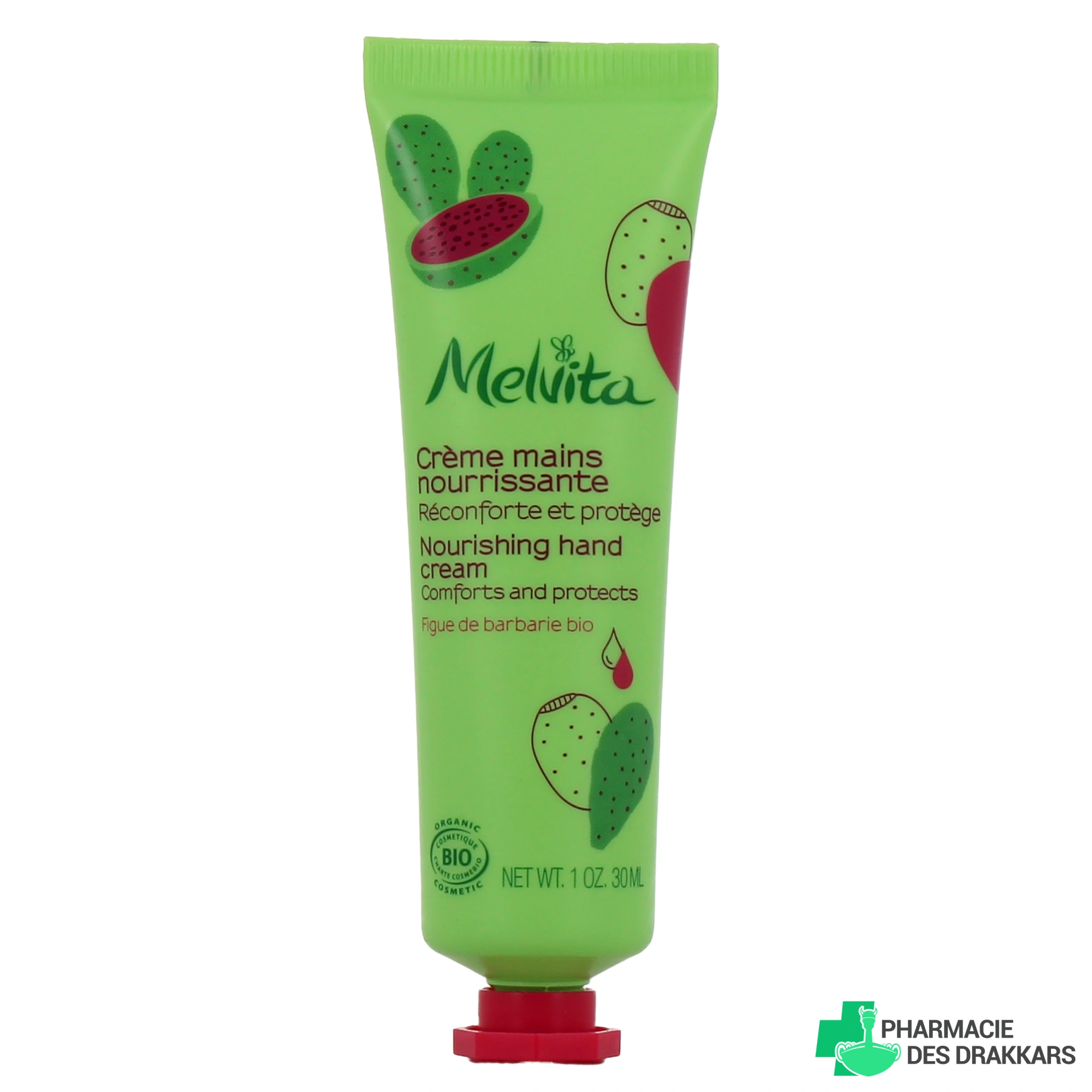Pour des mains nourries et intensément hydratées jour après jour, la Pharmacie des Drakkars vous propose la crème mains nourrissante Melvita, enrichie à l'huile de Figue de Barbarie.