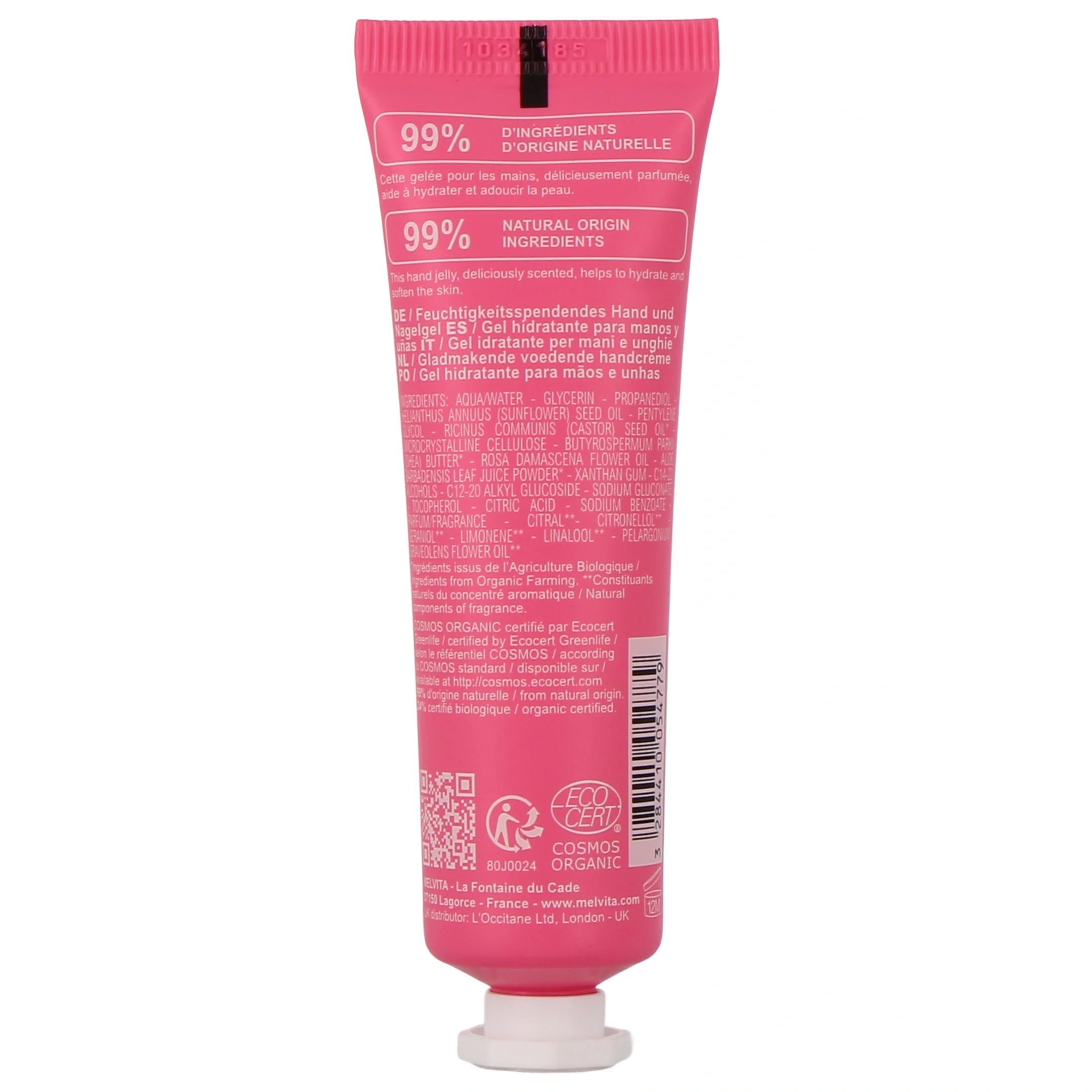 Conditionnement disponible sur notre pharmacie en ligne pour la gelée mains et ongles Melvita : Tube de 30 ml.