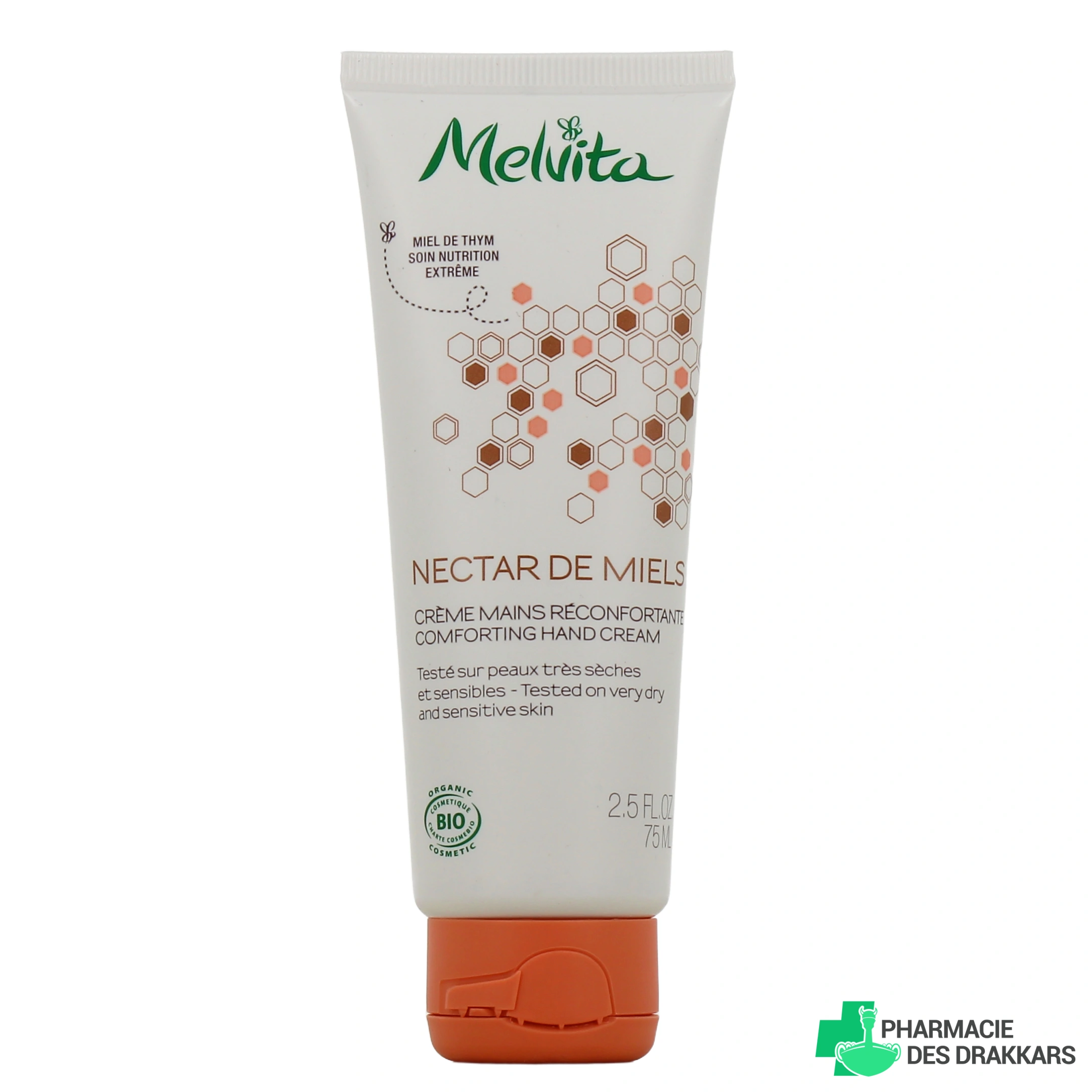 La crème pour les mains réconfortante Nectar de miels Melvita est un soin nutritif idéal pour les mains sèches et abîmées.