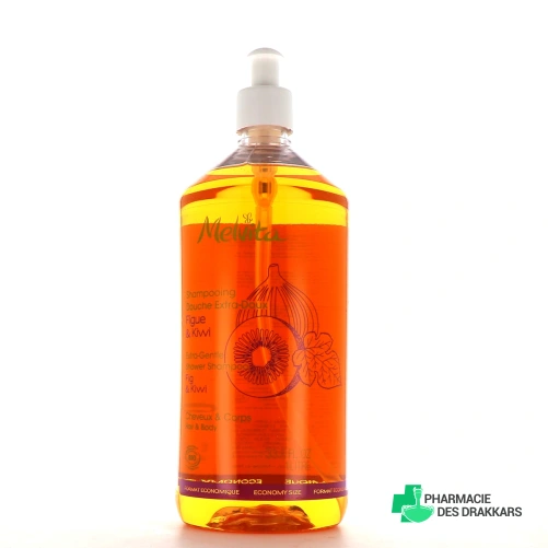 Conditionnement proposé par votre pharmacie en ligne pour le shampooing douche extra-doux Melvita : flacon pompe de 1 litre.