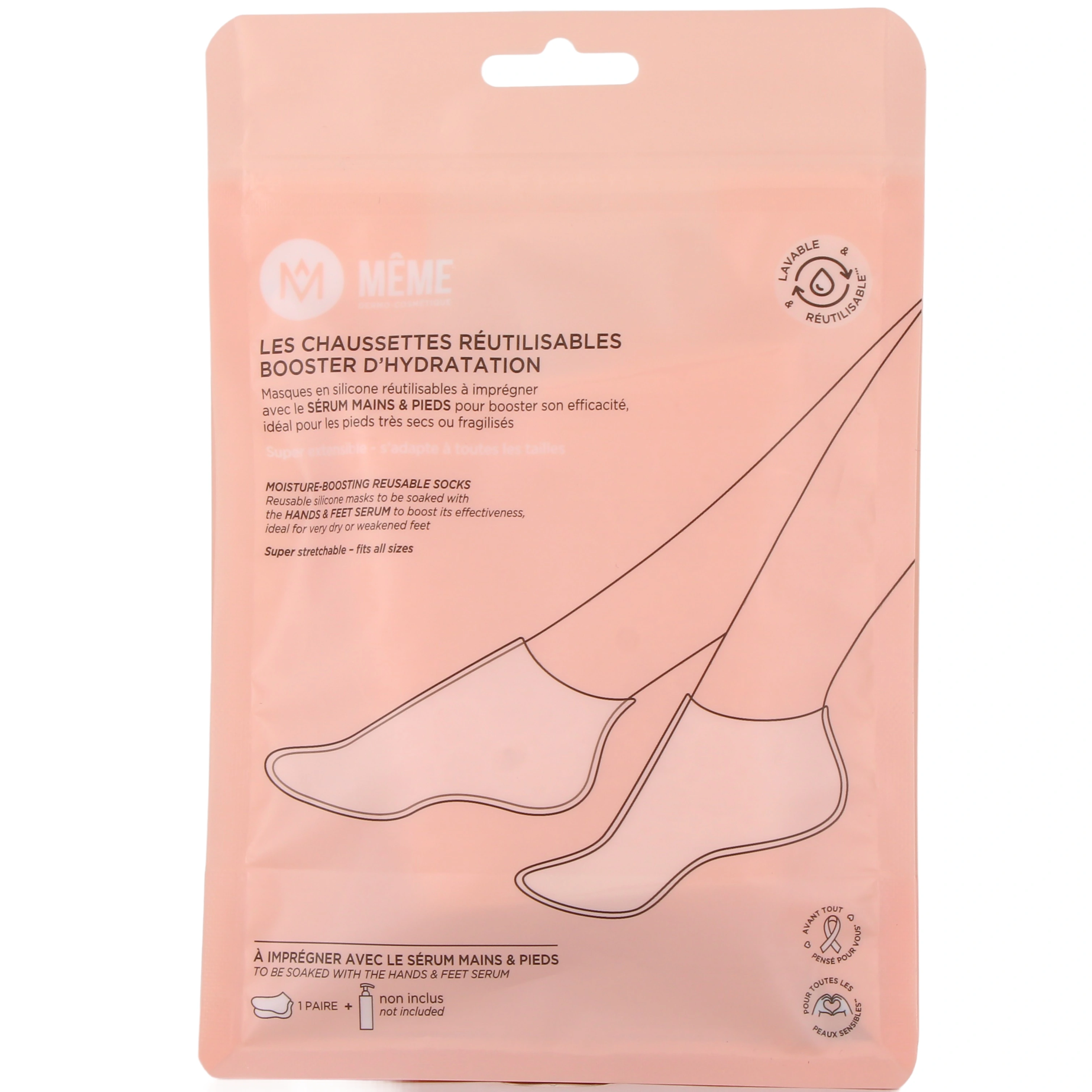 Les chaussettes réutilisables booster d'hydratation de Même sont conçues pour maximiser l'efficacité du sérum mains et pieds de la même marque grâce à une action occlusive ciblée. Elles favorisent la pénétration des actifs, limitent la déshydratation et prolongent les bienfaits du soin. Idéales pour les pieds très secs ou fragilisés, elles offrent une solution durable et respectueuse de l'environnement. Réutilisables et ultra-extensibles, elles s'adaptent à toutes les tailles pour un confort optimal.