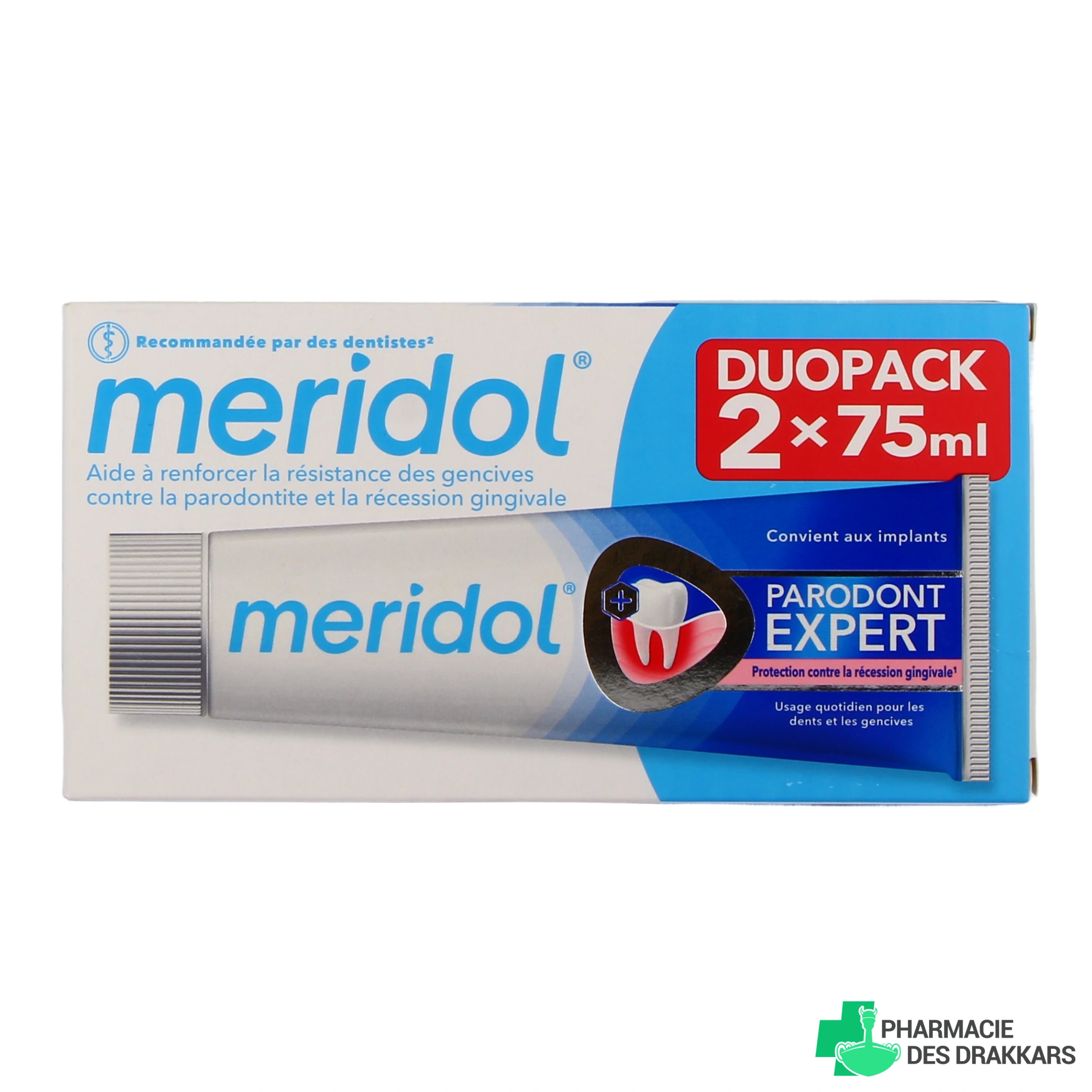 - Lot de 2 tubes de 75 ml en duo avec un lot de 2 brosses à dents souples Méridol ¨P¨rotection Gencives.