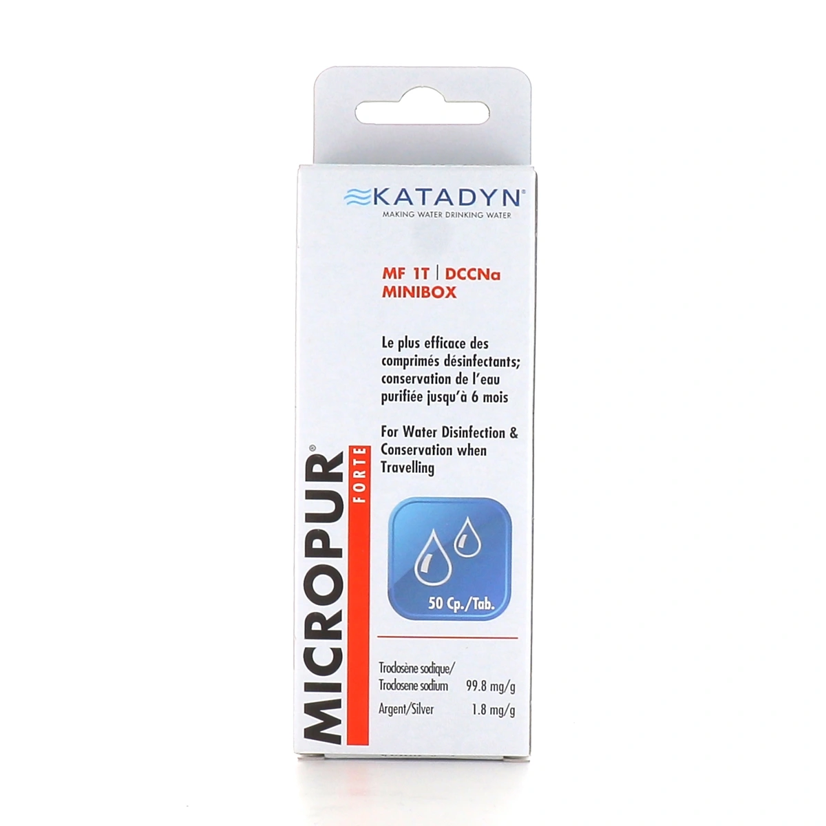 Proposés par les laboratoires Katadyn, les comprimés Micropur Forte visent à purifier et désinfecter l'eau. Ils sont particulièrement utiles en voyage et permettent de consommer une eau purifiée.