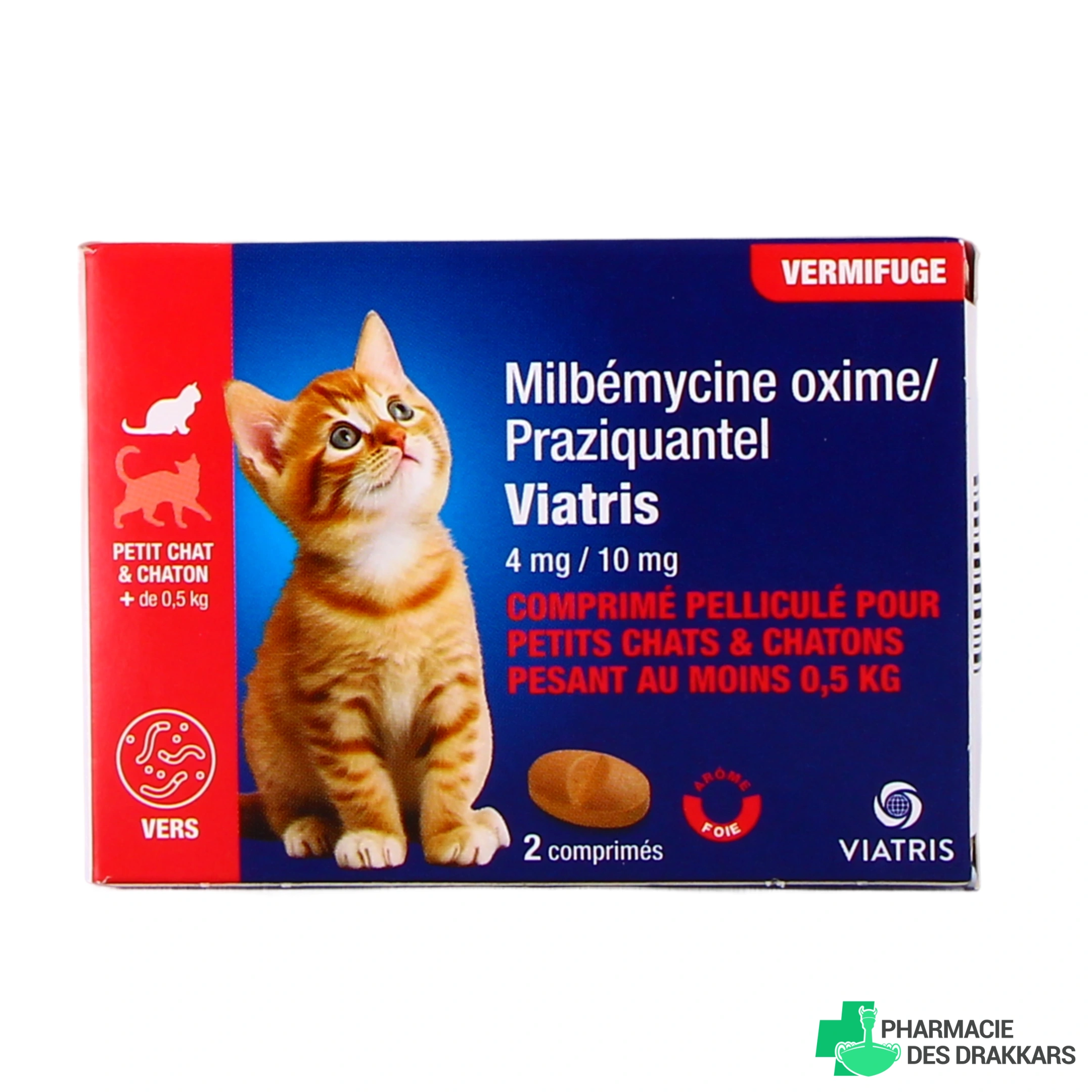 La vermifugation est généralement recommandée 2 à 4 fois par an, ou selon l'avis du vétérinaire, notamment chez les chats ayant accès à l'extérieur ou vivant en collectivité. Il est déconseillé d'administrer ce produit à un chaton trop jeune ou en dessous du poids minimal recommandé sans avis vétérinaire préalable.| Poids corporel | Comprimés pelliculés pour petits chats et chatons | Comprimés pelliculés pour chats |