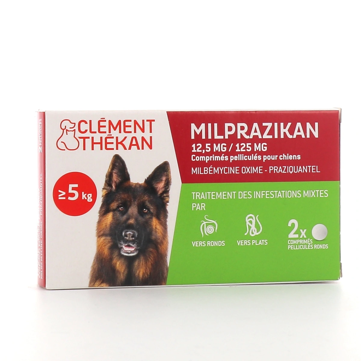 Milprazikan de Clément Thékan est un vermifuge pour chien utilisé dans le traitement des infestations mixtes par les vers ronds et les vers plats.
