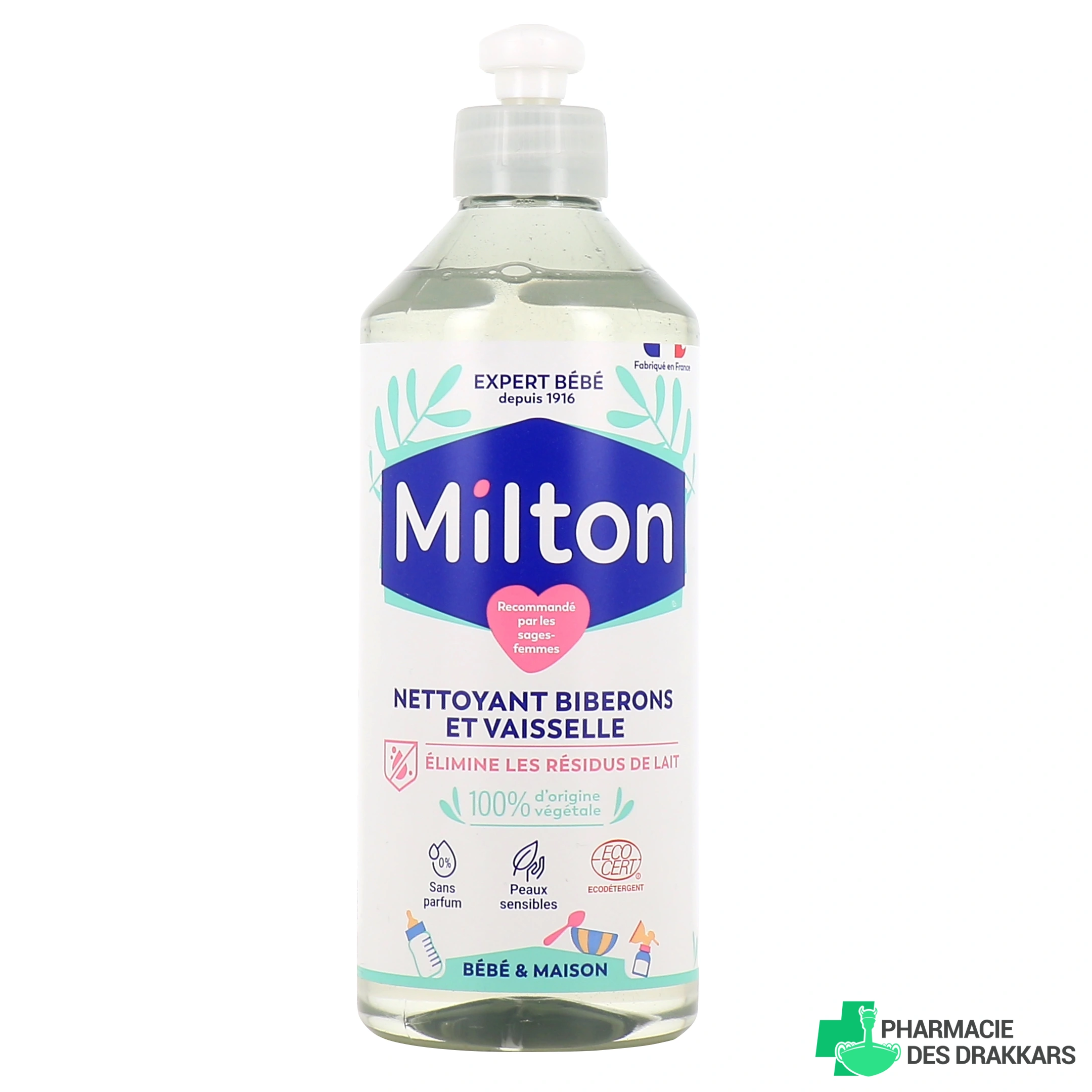 Dès son plus jeune âge, bébé a besoin de nombreux accessoires, à commencer par les biberons ou encore les tétines. S'ils ne sont pas nettoyés correctement et régulièrement, tous ces accessoires peuvent être propices au développement de certaines bactéries, notamment à cause des résidus de lait. C'est pourquoi leur nettoyage est indispensable ! Découvrez ainsi le liquide nettoyant pour biberons Milton disponible au meilleur prix sur votre pharmacie en ligne.