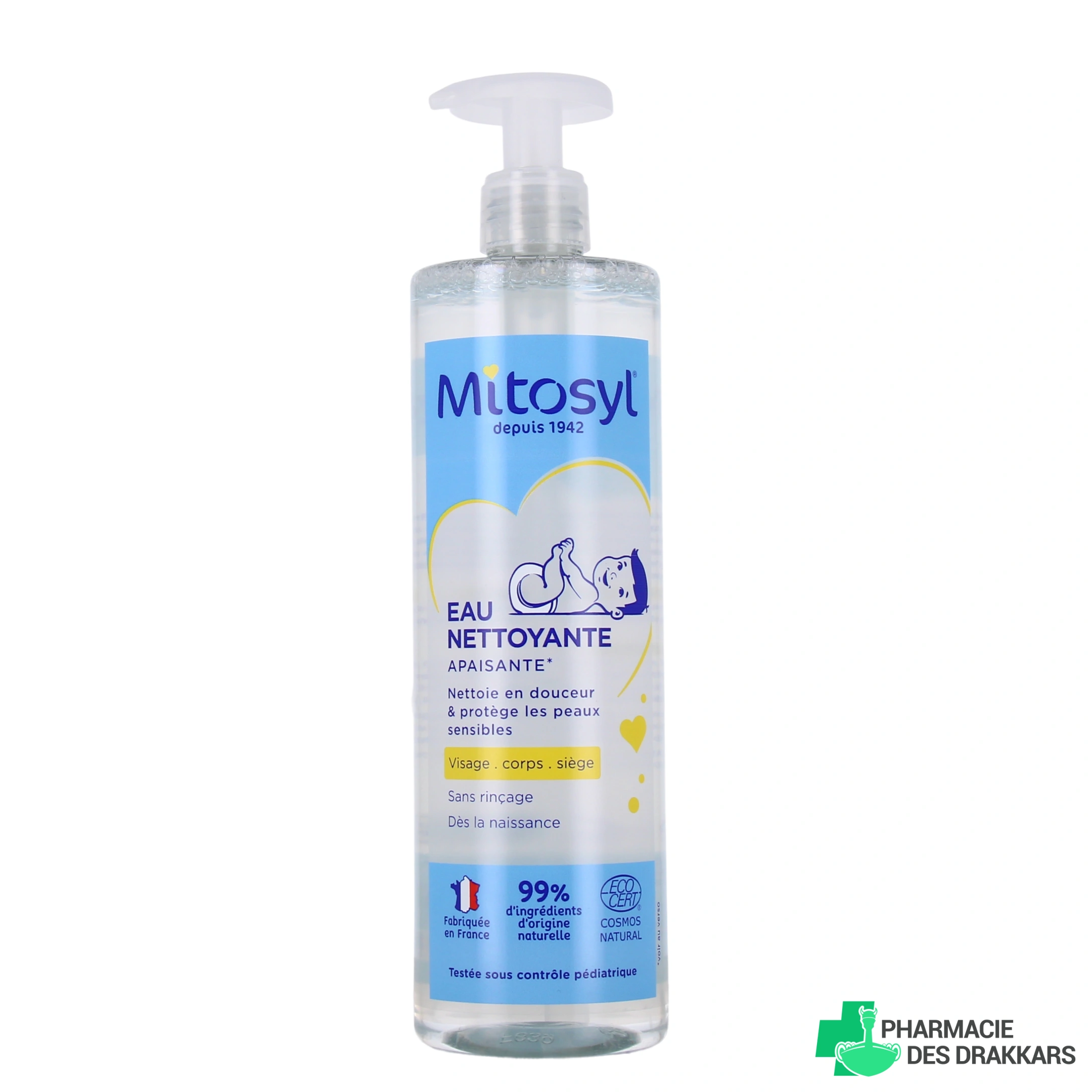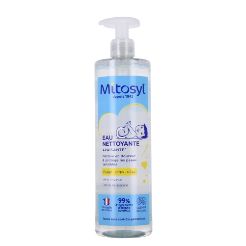 L'eau nettoyante Mitosyl permet de nettoyer efficacement et en douceur la peau sensible et délicate des tout-petits. Elle a aussi une action apaisante et rafraîchit instantanément. Cette eau nettoyante est adaptée à un usage quotidien, dès la naissance.