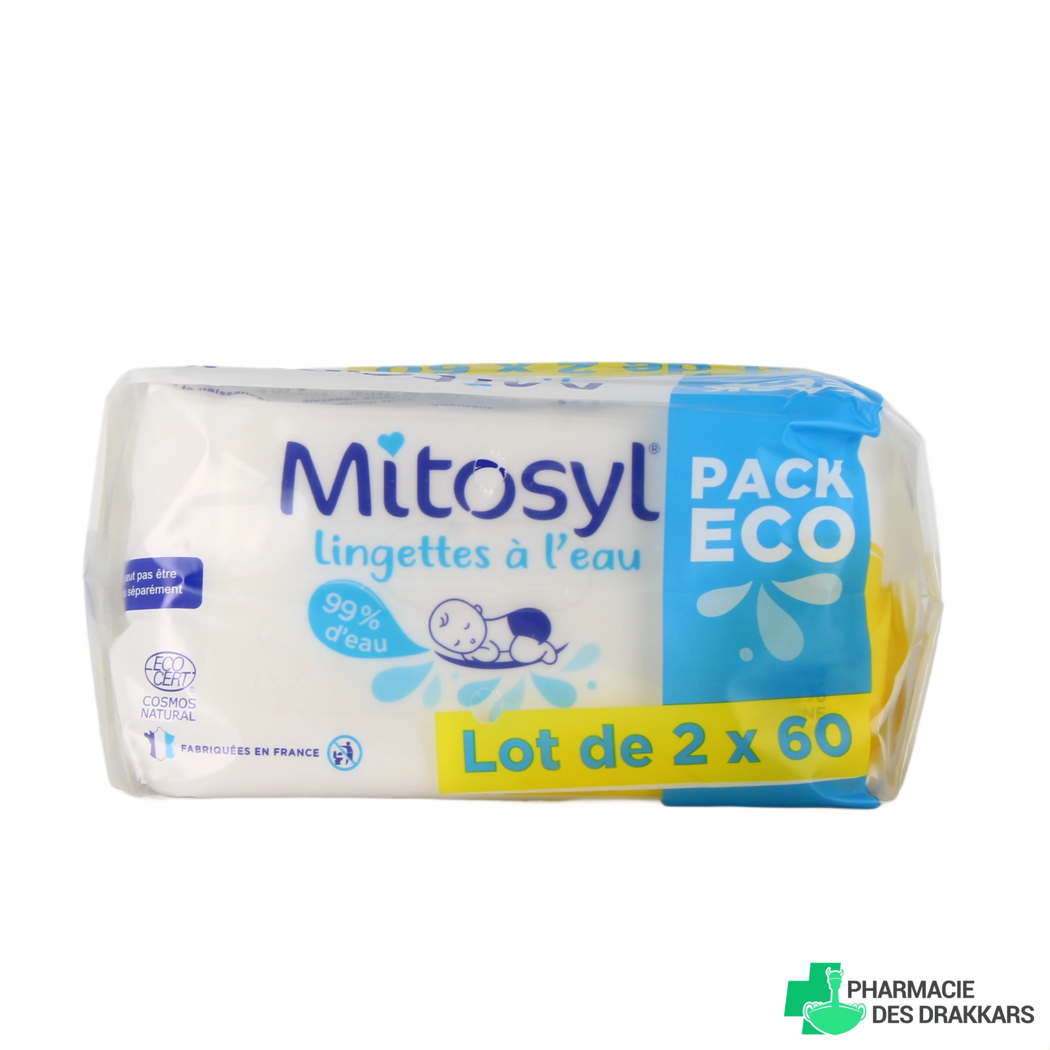 Présentation disponible pour les lingettes à l'eau Mitosyl sur notre pharmacie en ligne : Paquet de 60 lingettes, lot de 2 ou de 5 paquets de 60 lingettes.