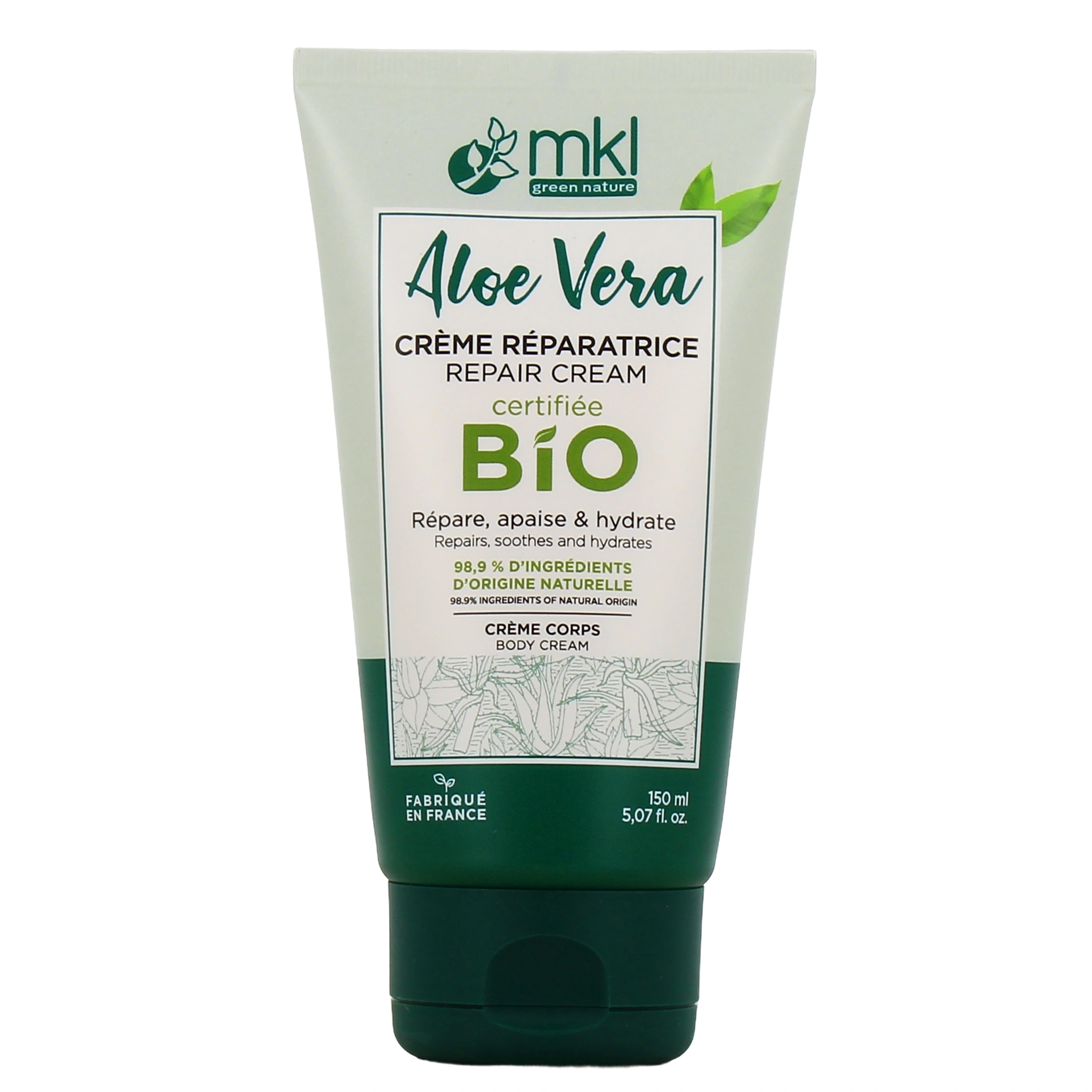 Au total, la formule de la crème réparatrice Aloe Vera Bio MKL contient 98,9% d'ingrédients d'origine naturelle. Elle est fabriquée en France.