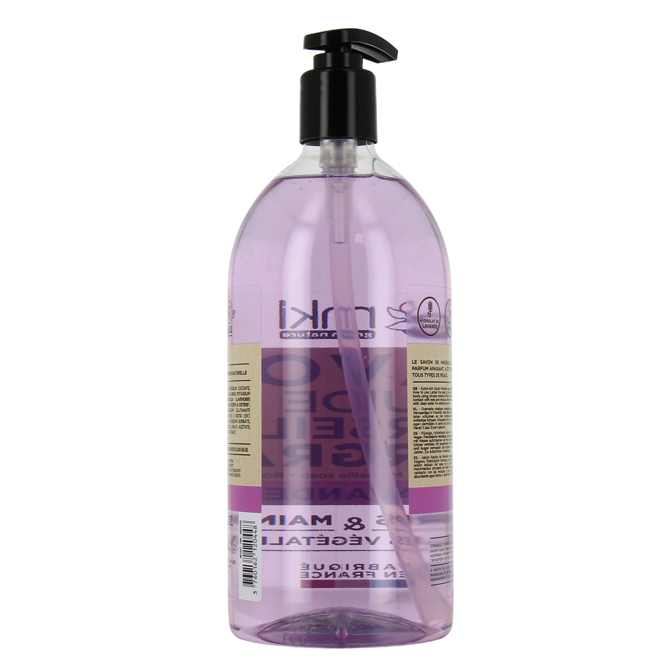Présentation disponible pour le savon liquide de Marseille sur notre pharmacie en ligne : Flacon-pompe de 1 litre, senteur au choix (Neutre, Orange & Miel, Thé Vert, Rose, Lavande ou Monoï).