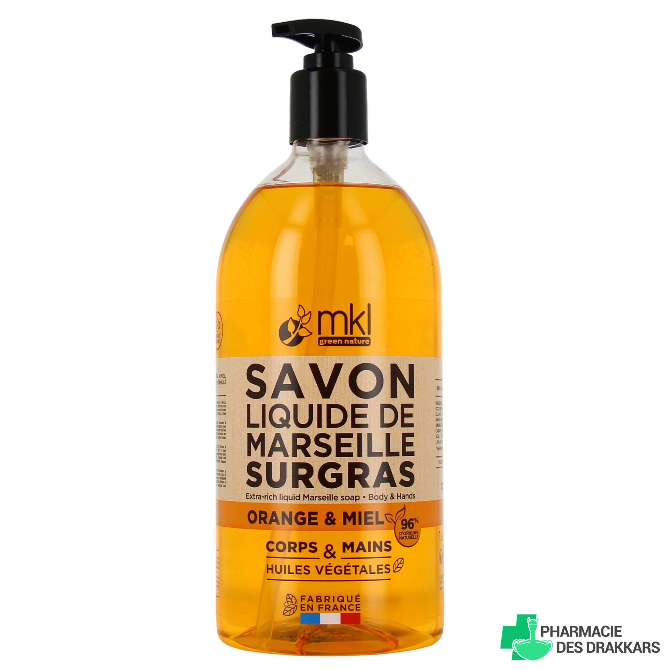 Fabriqué dans le respect de la tradition artisanale, le savon liquide de Marseille proposé par la marque MKL est destiné à l'hygiène quotidienne du corps et des mains. Il s'agit d'un nettoyant surgras idéal pour tous les types de peau.