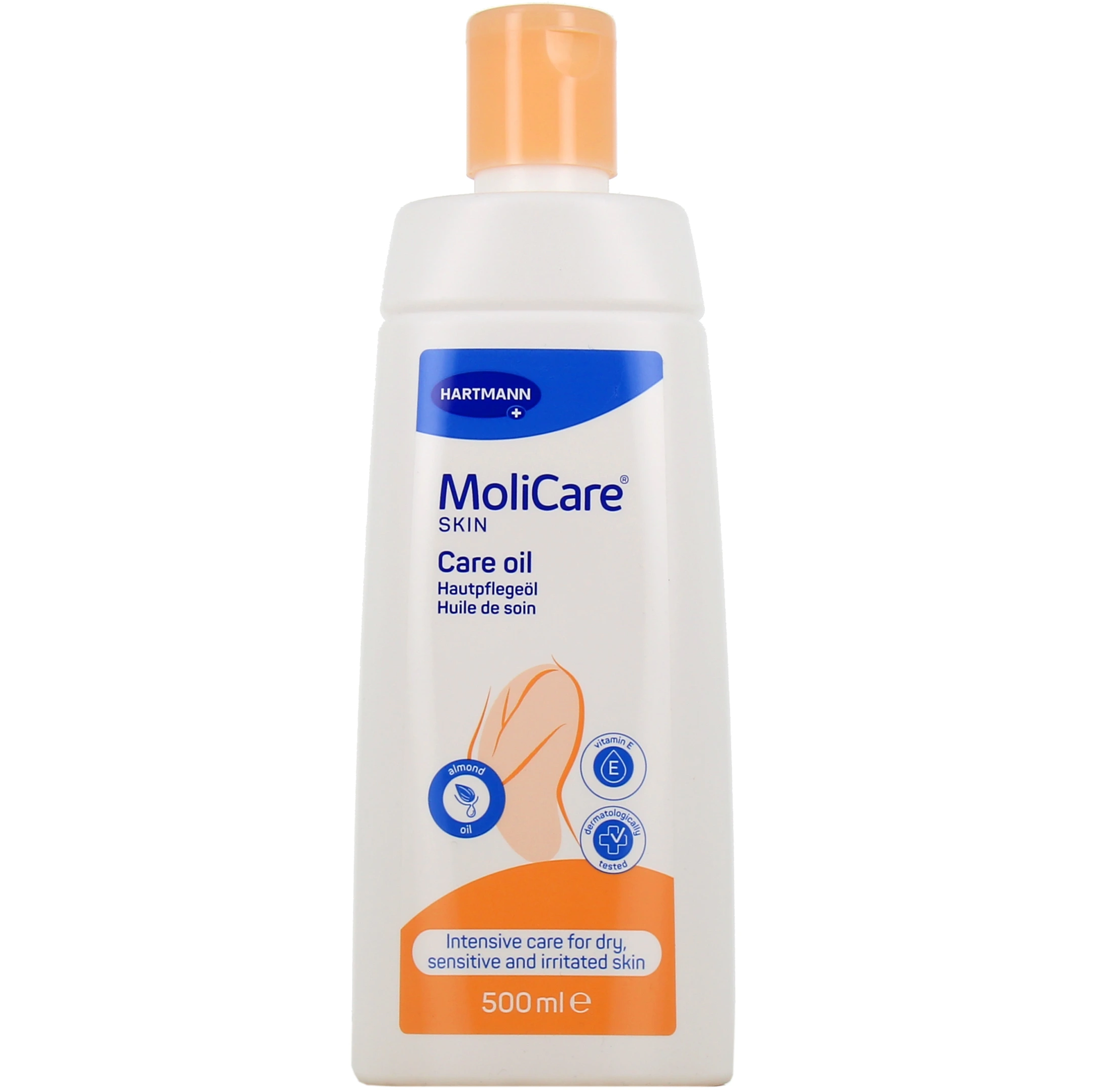 Vous pourrez sélectionner votre huile de soin MoliCare Skin d’Hartmann parmi les conditionnements suivants sur notre pharmacie en ligne : flacon de 500 ml.