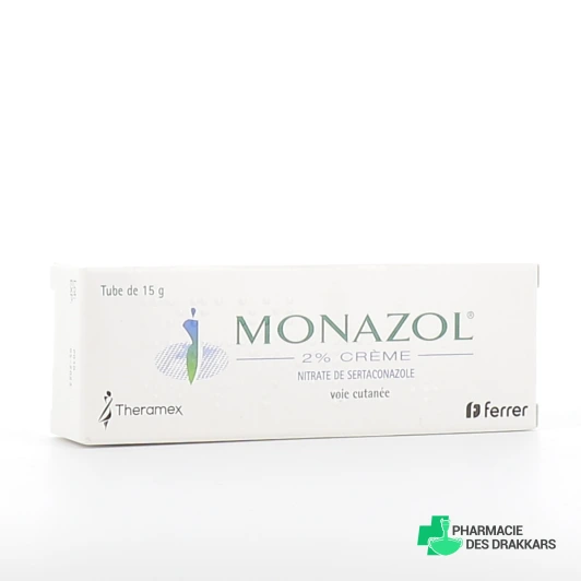 Précautions d’emploi et posologie : Le dosage habituellement recommandé pour un traitement avec la crème Monazol est d'une application par jour, après avoir lavé les lésions avec un savon neutre ou alcalin. Monazol Crème 2% doit être appliqué sur la lésion et son pourtour sur environ 1 cm. La durée du traitement des mycoses avec Monazol Crème 2% est généralement de 21 jours pour les affections de la peau et de 8 jours pour les affections touchant la zone génitale. Le traitement sera à adapter avec un professionnel. Contre-indications : Ce médicament ne doit pas être utilisé en cas d'allergie aux antifongiques de la famille des imidazolés. Évitez d'utiliser ce médicament, notamment chez l'enfant, de manière prolongée et sur des surfaces étendues ou profondément lésées sans l'avis de votre pharmacien ou de votre médecin. Le passage du médicament dans le sang est négligeable. Il peut être utilisé pendant la grossesse ou l'allaitement si votre médecin le juge nécessaire. Effets indésirables possibles : Comme tout médicament, Monazol peut déclencher des effets non systématiques tels qu’une :- Irritation cutanée (démangeaisons, rougeur) ;