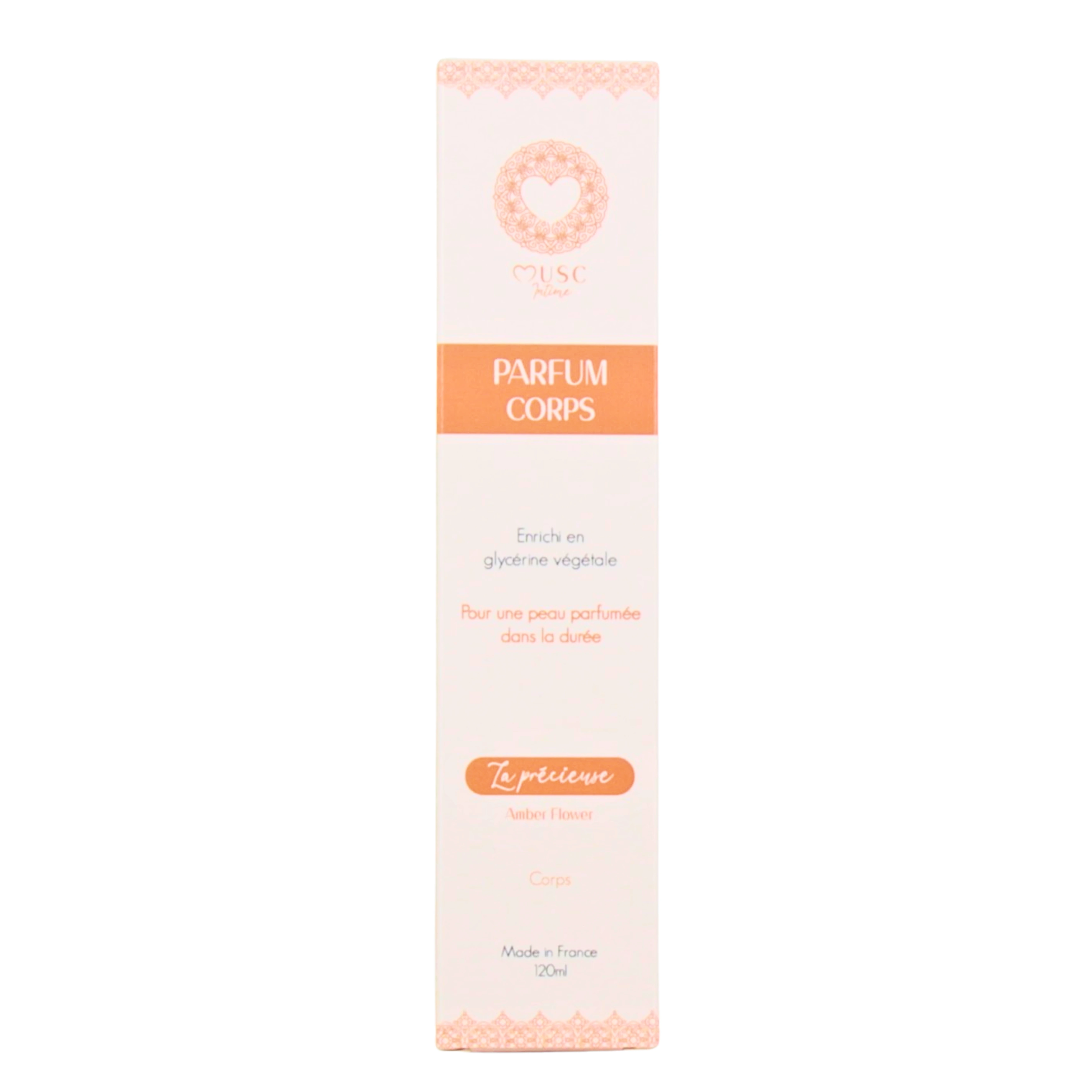 Présentation proposée par notre pharmacie en ligne pour le parfum corps Musc Intime : flacon pulvérisateur de 120 ml, senteur au choix.