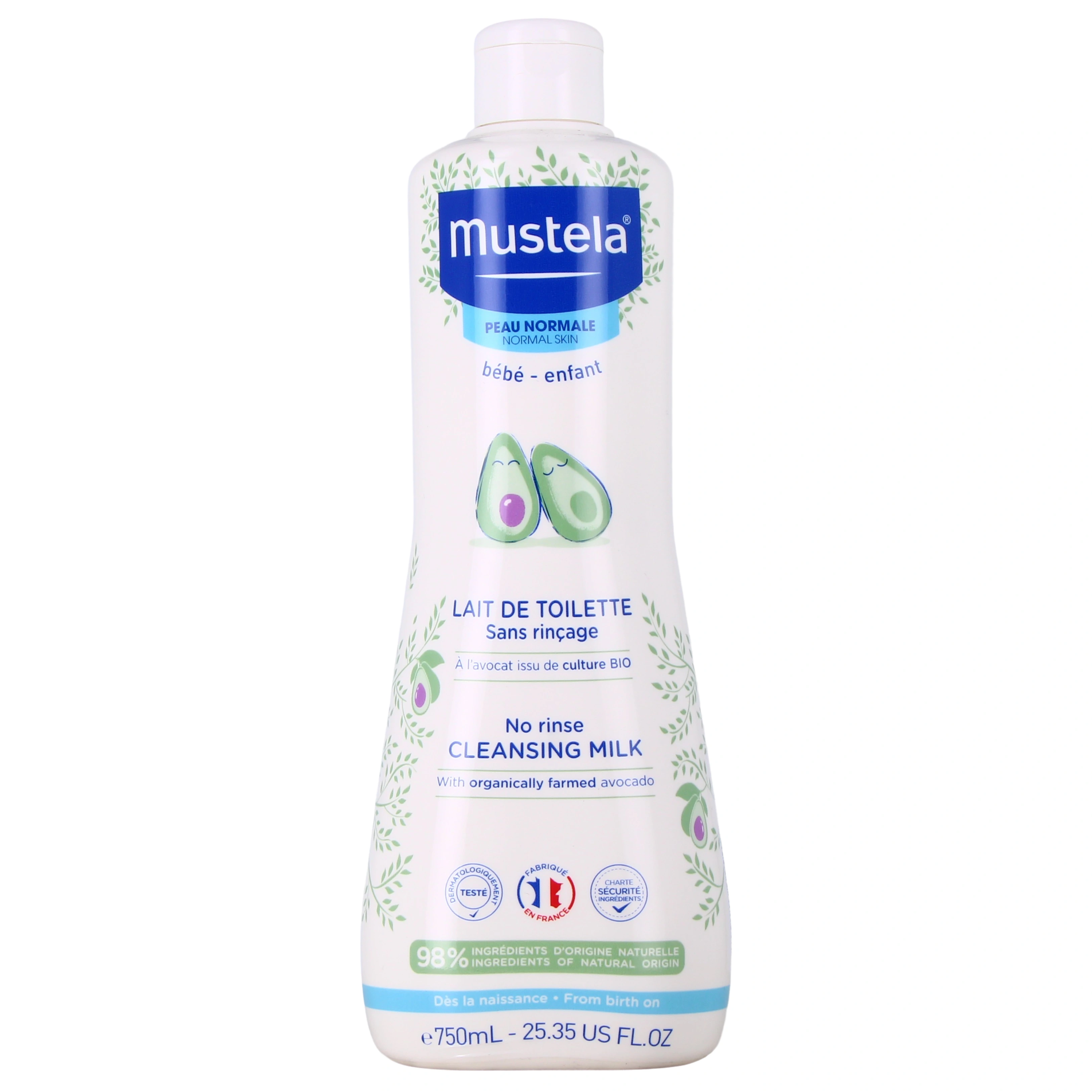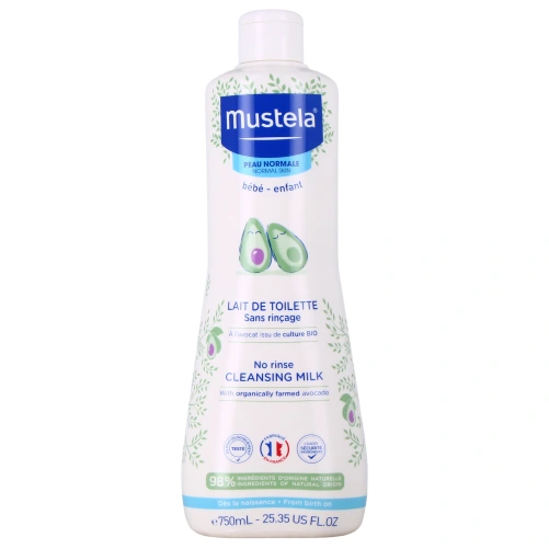 Formulé à 98% d'ingrédients d'origine naturelle, le lait de toilette Mustela élimine efficacement et tout en douceur les impuretés du visage et des fesses de bébé. L'association de perséose d'avocat et d'huile de tournesol prévient le dessèchement cutané en protégeant le film hydrolipidique de la peau.