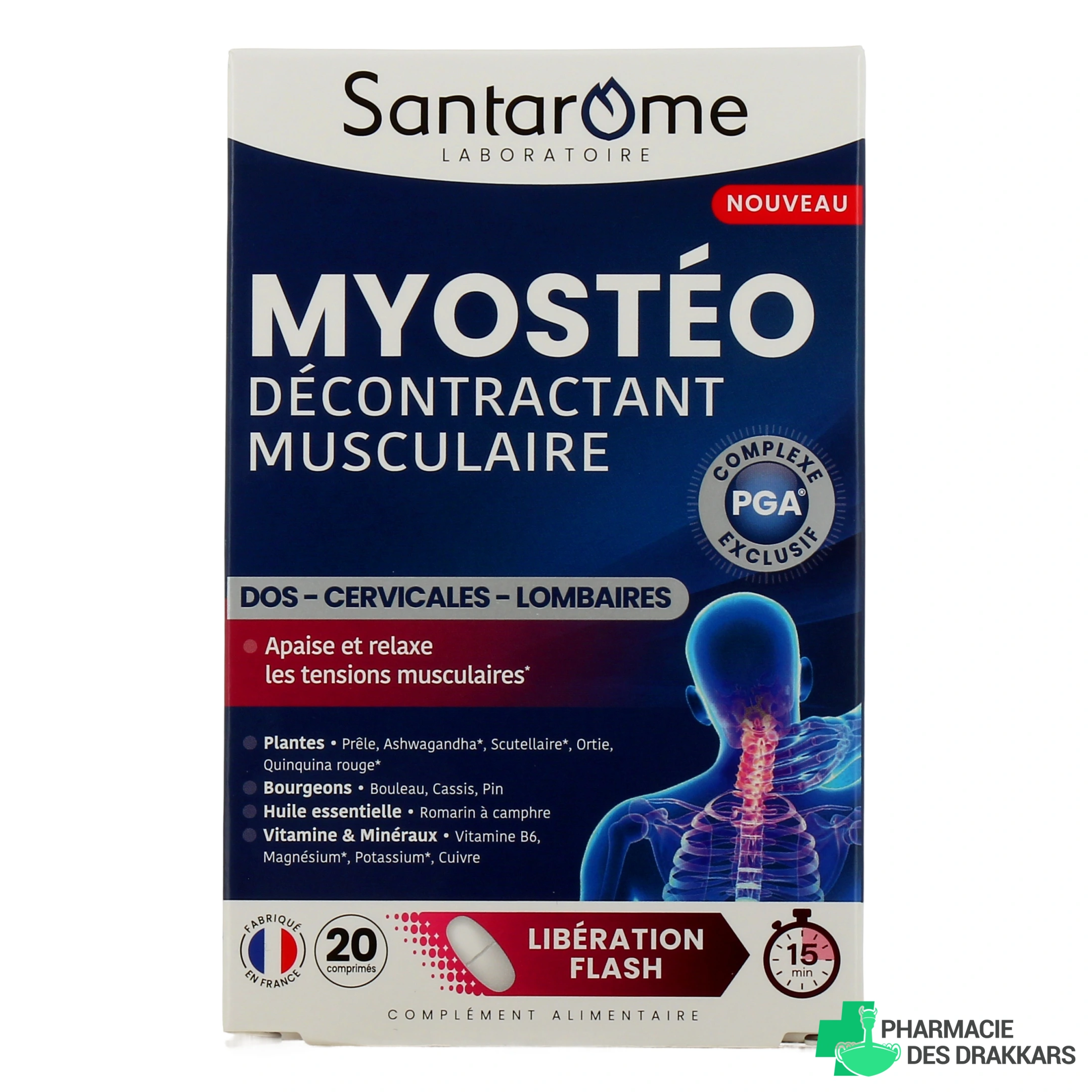 Vous pourrez retrouver le complément alimentaire Myostéo Décontractant Musculaire de Santarome dans les présentations suivantes chez Pharmacie des Drakkars : boîte de 20 comprimés.