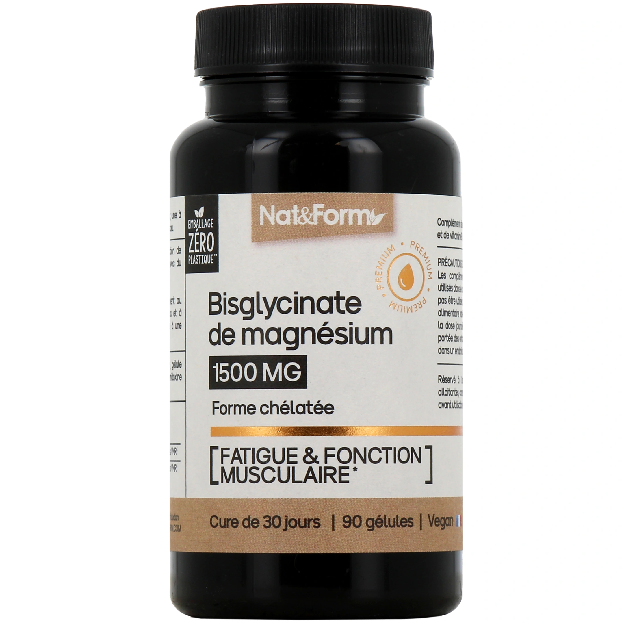 Le magnésium est un minéral essentiel au bon fonctionnement de l'organisme. Chaque jour, le bisglycinate de magnésium Nat & Form vous apporte un haut dosage en magnésium. Le bisglycinate de magnésium est l'association de deux molécules de glycine (acide aminé) avec du magnésium.