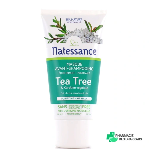 Conditionnement proposé par votre pharmacie en ligne pour le masque avant shampooing au Tea Tree Natessance : tube de 150 ml.