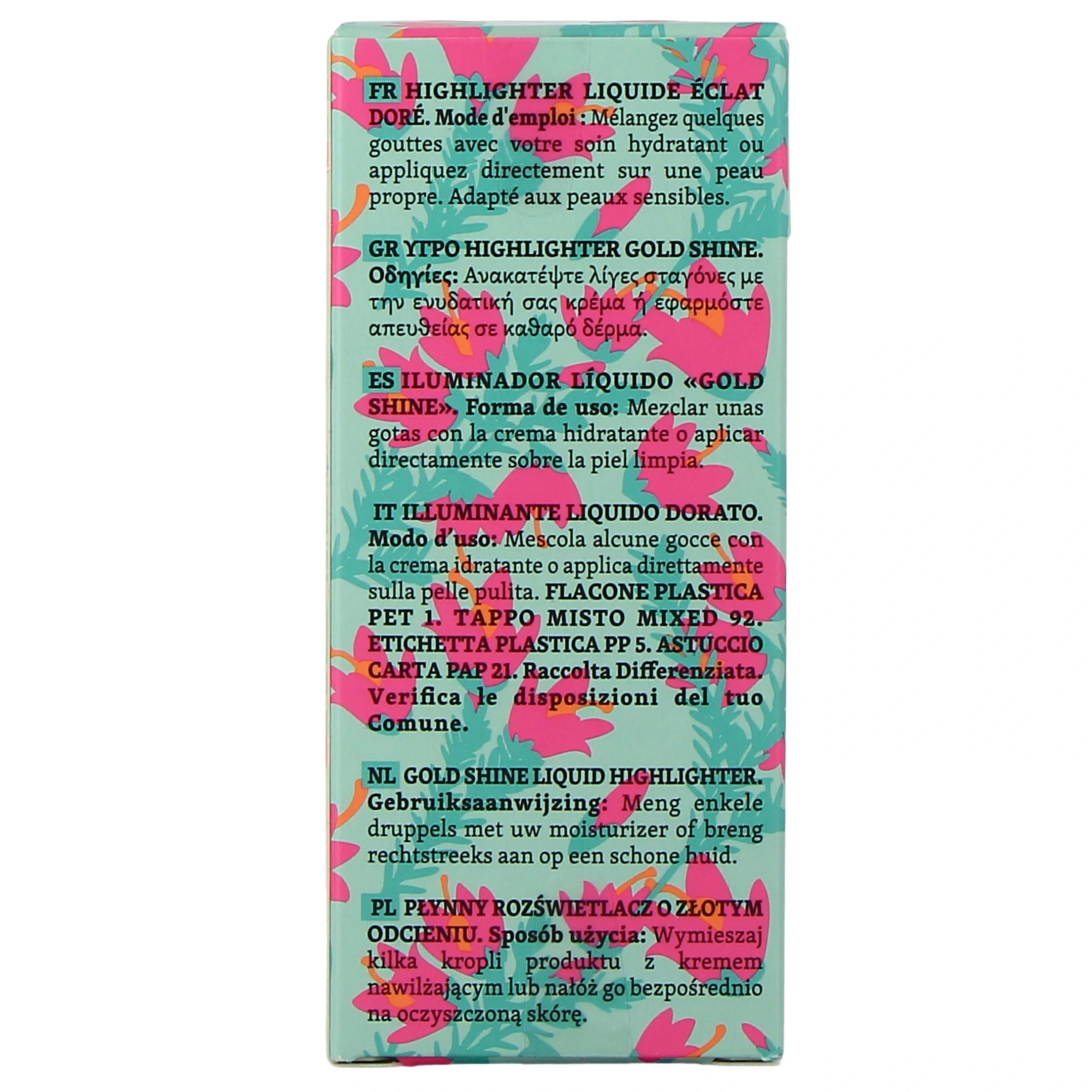 Cet Highlighter Liquide C-Berrica de Natura Siberica est véritable soin hybride, destinée aux femmes à la recherche d'une solution leur permettant de prendre soin à la fois de la santé de leur peau et de l'éclat de leur teint. Ce fluide associe en effet au coeur de sa formule la performance des actifs cosmétiques hydratants avec la luminosité et l'éclat des pigments qu'elle renferme, et qui sont associés au mica. Avec une seule application, votre visage s'illumine d'un éclat naturel ou doré Gold intense (selon la version choisie), idéal pour transformer votre maquillage quotidien en un moment de soin et de plaisir, pour vous faire resplendir !
