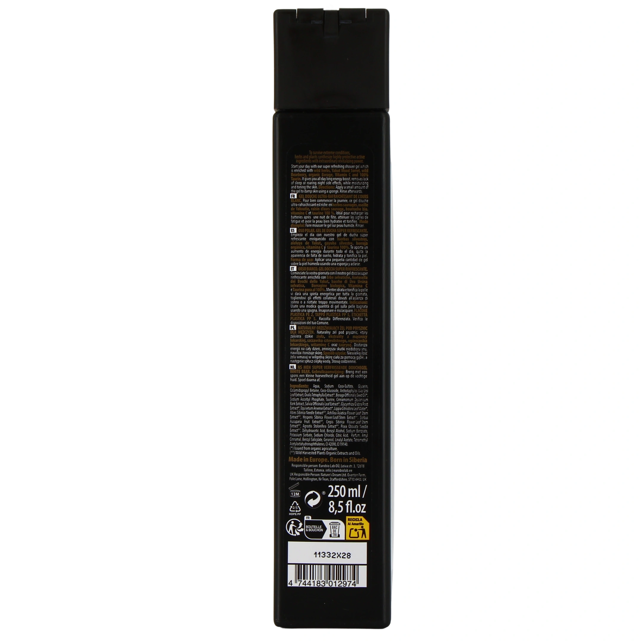 Le gel douche L'Ours Blanc de Natura Siberica est un soin lavant pour homme composé d'herbes sauvages de Sibérie, naturellement chargées en énergie. Elles apportent aux hommes actifs toute la force dont ils ont besoin pour affronter la journée.