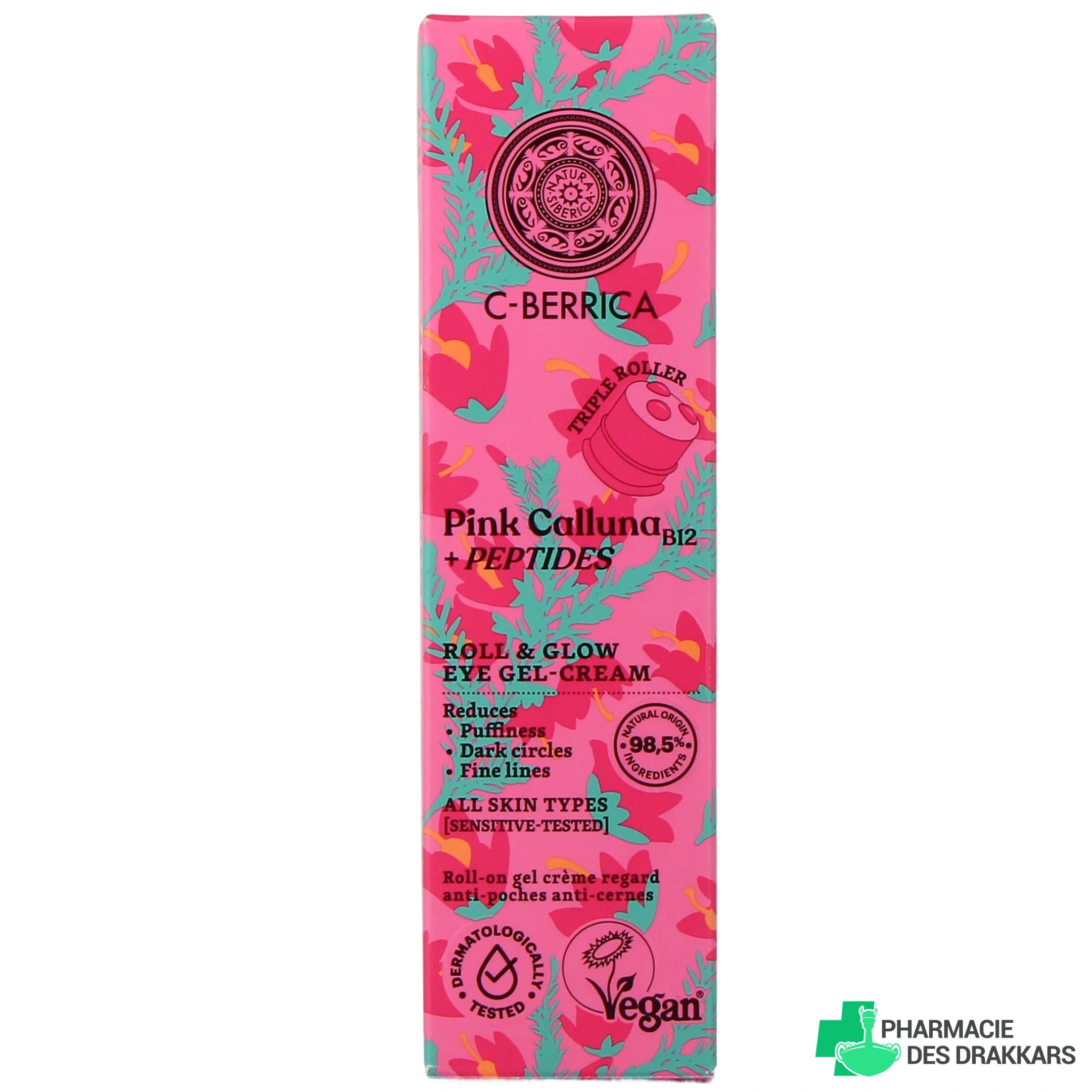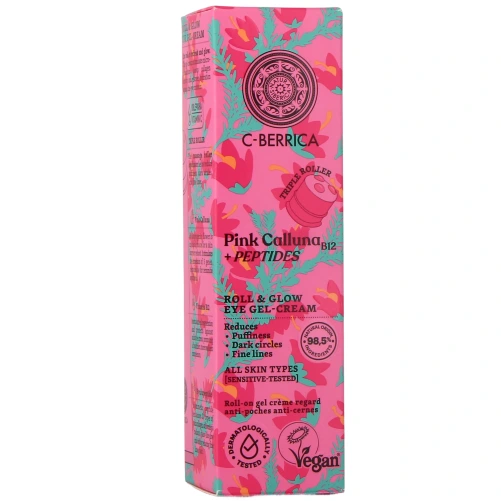 La formule composée à 98,5% d'ingrédients d'origine naturelle du roll-on regard Natura Siberica associe plusieurs actifs performants. La bruyère rose, fleur adaptogène, stimule la synthèse des céramides et aide à régénérer la barrière cutanée. La vitamine B12 favorise la régénération cellulaire et protège du stress oxydatif pour une peau plus résistante. Enfin, le hyalupeptide contenu dans ce contour des yeux C-Berrica, soutient la production de collagène et contribue à réduire rapidement l'apparence des ridules tout en illuminant le teint.